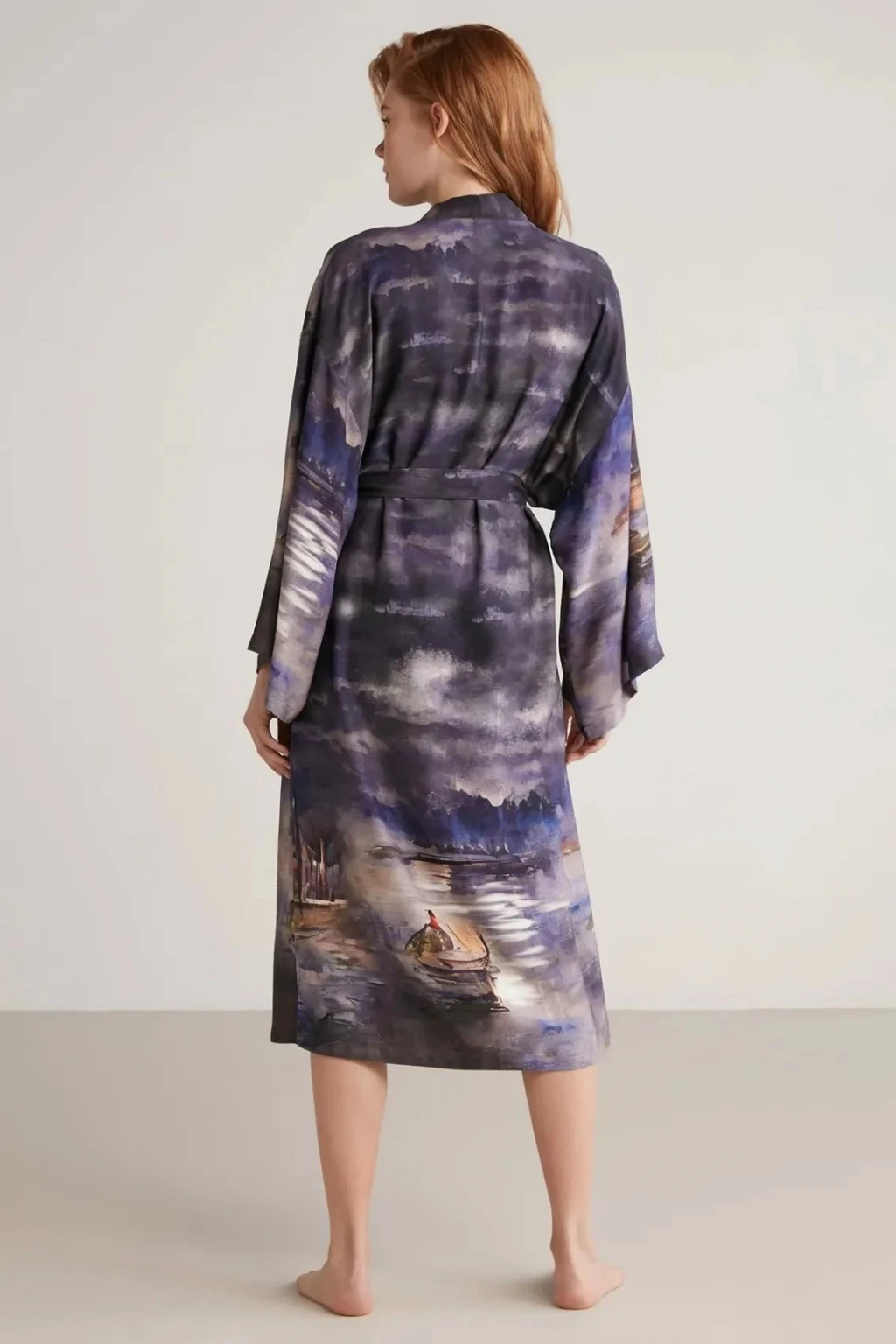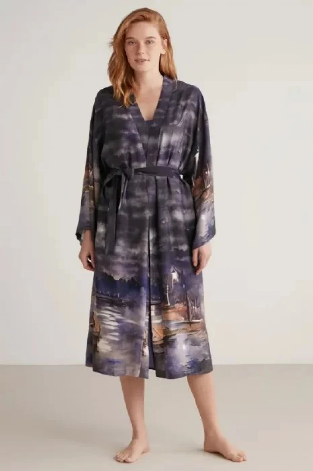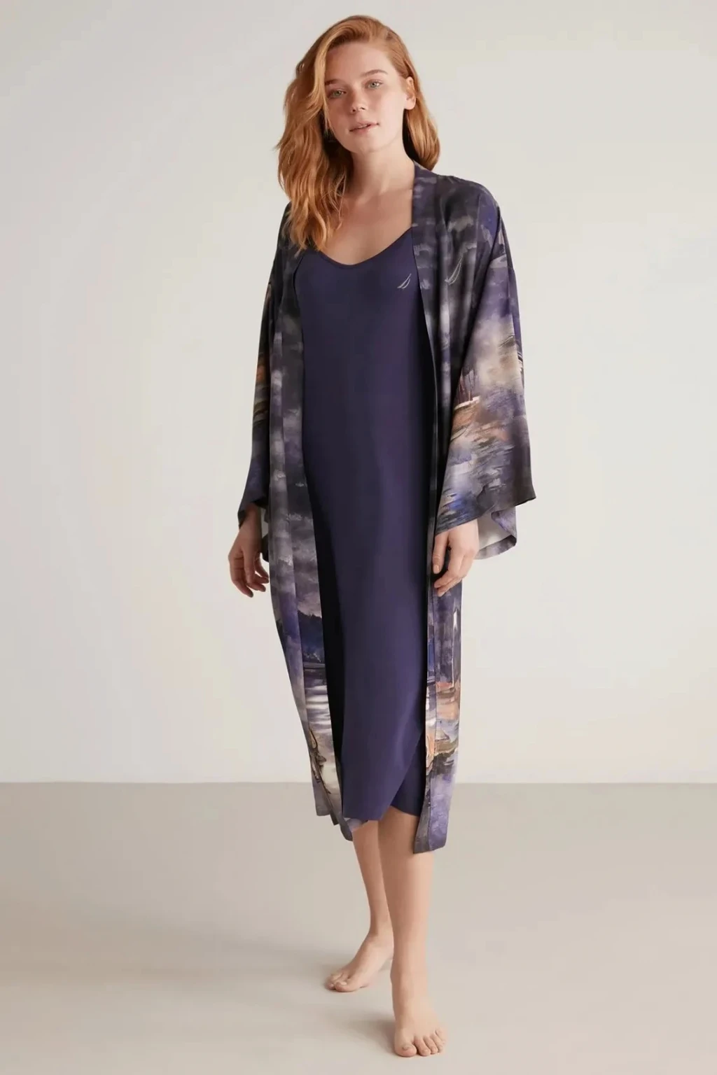 Nautıca W603 Kadın Baskılı Uzun Gecelik Ve Sabahlık Takımı
