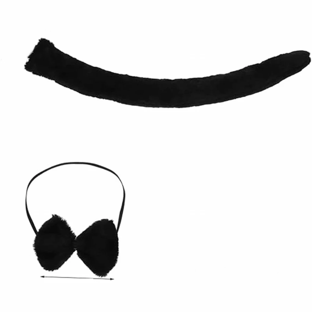 Peluş Siyah Renk Kuyruk ve Papyon Yetişkin Çocuk Uyumlu