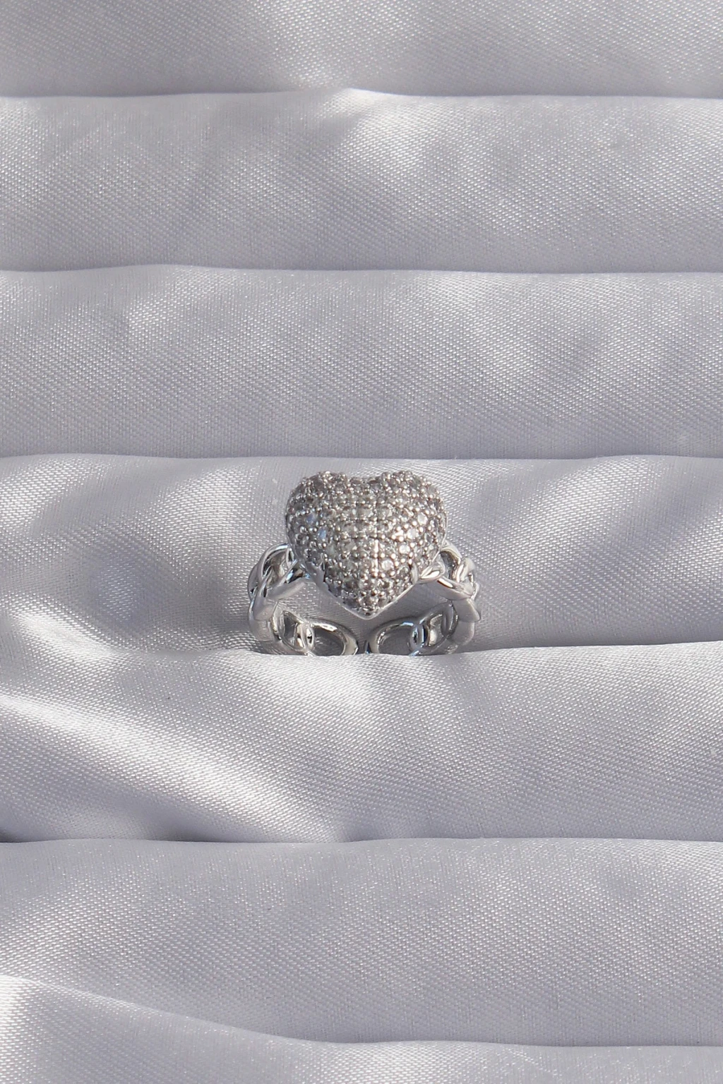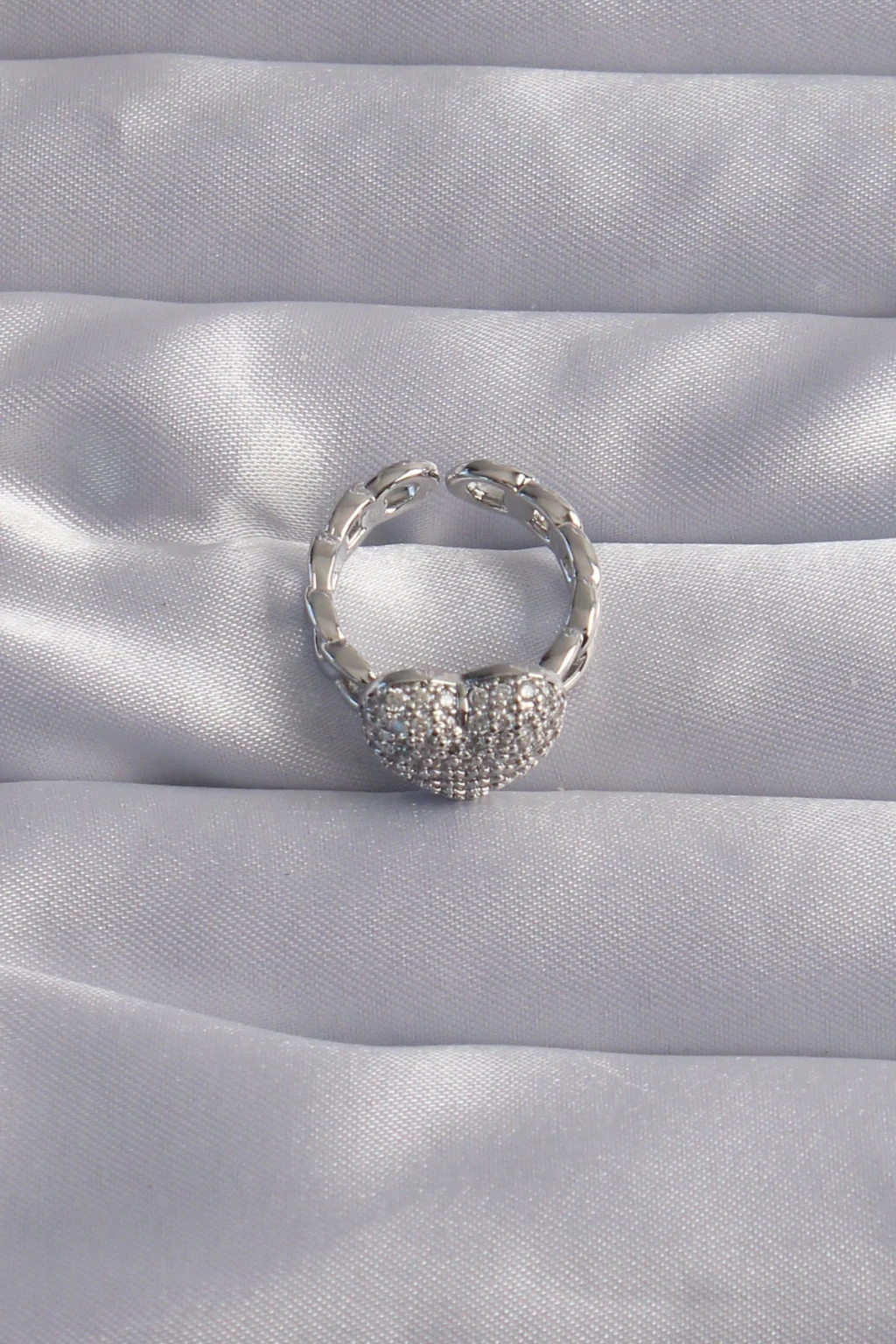 Pirinç Ayarlamalı Gümüş Renk Zirkon Taşlı Bombeli Kalp Yüzük - TJ-BYK3282