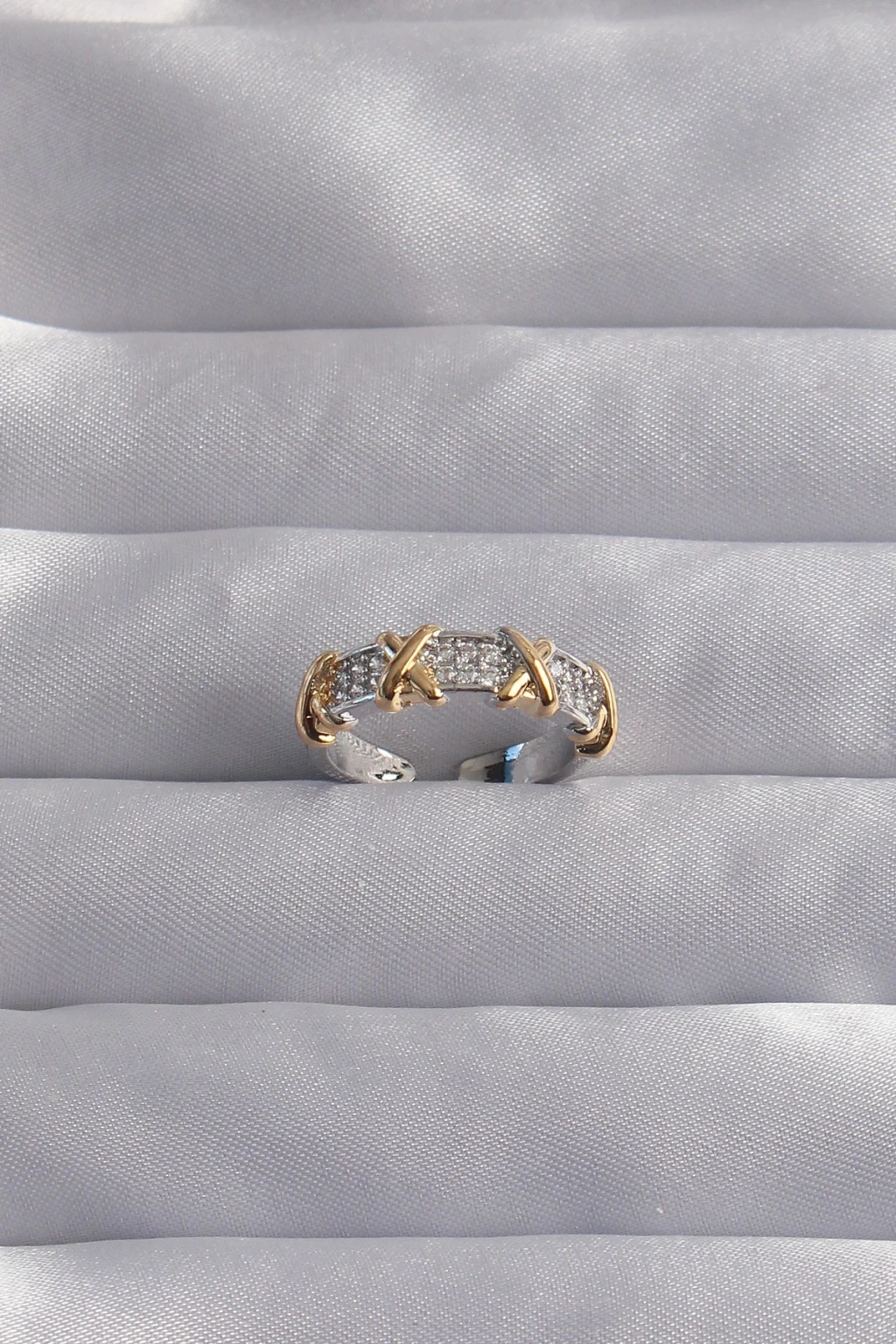 Pirinç Ayarlamalı Gümüş Renk Zirkon Taşlı XOXO Model Yüzük - TJ-BYK3284