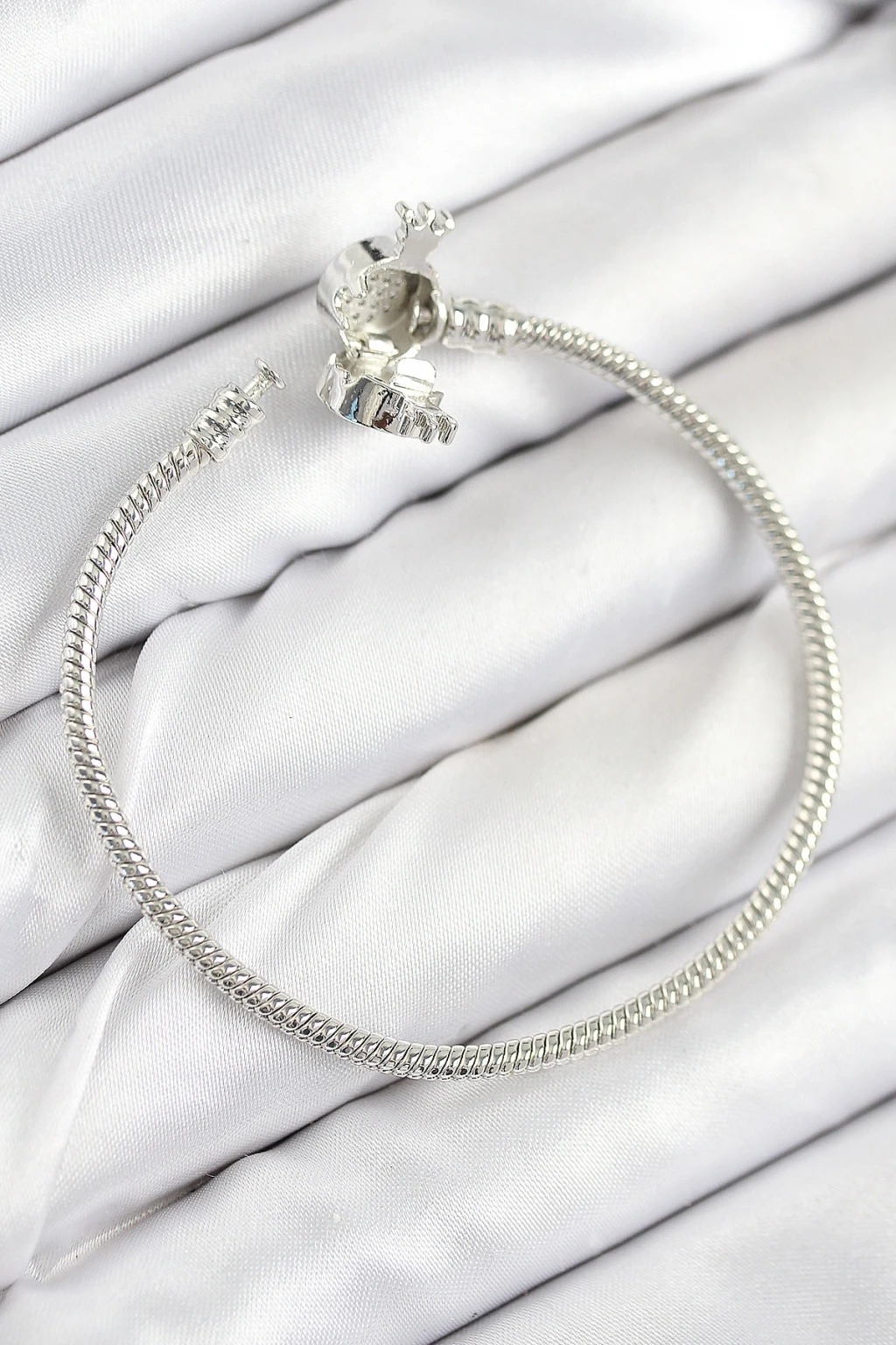 Pirinç Charm Zirkon Taşlı Taç Model Gümüş Renk Kadın Bileklik - TJ-BB7802