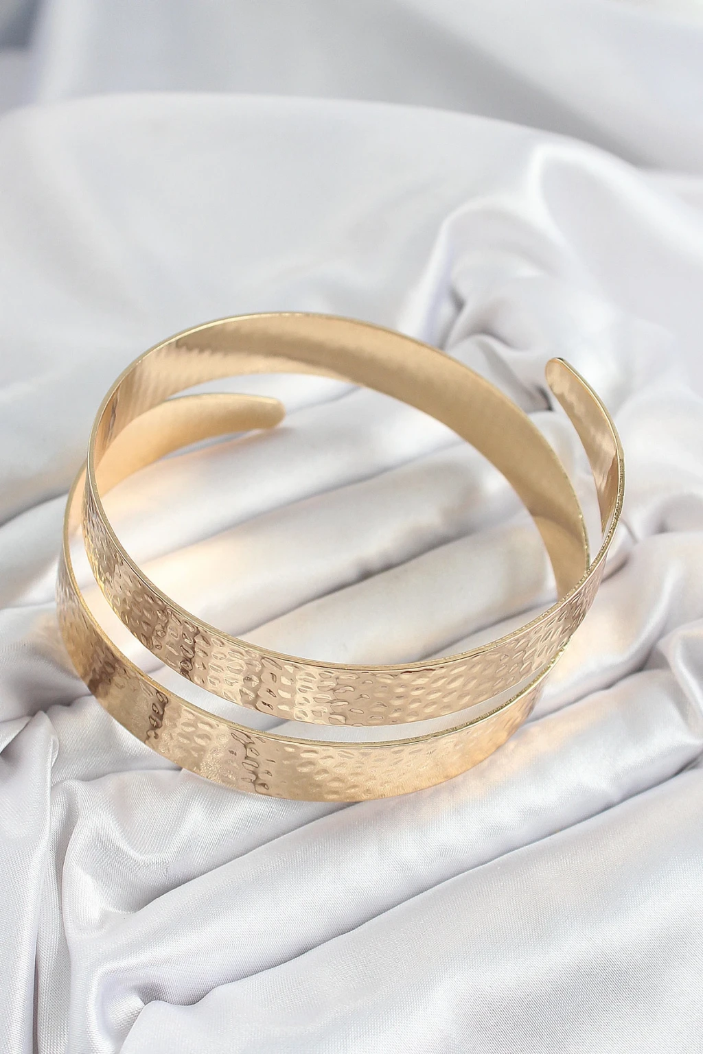 Pirinç Dövme Desenli Gold Renk Kadın Pazu Bileklik - TJ-BB7197