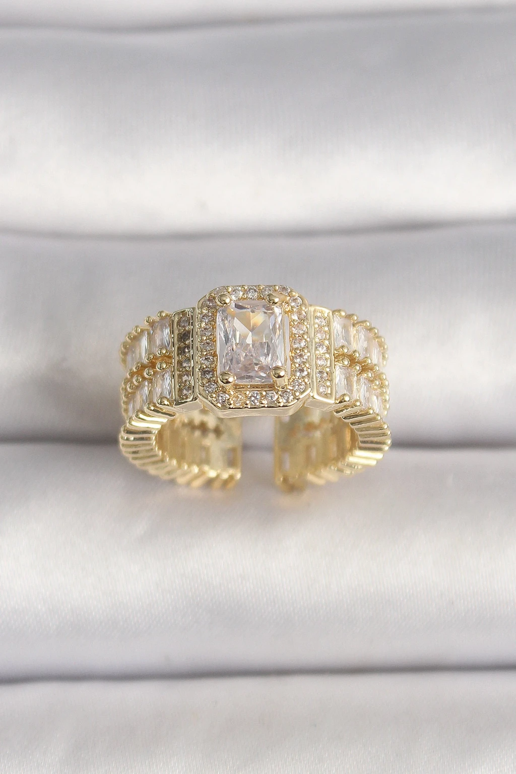 Pirinç Gold Renk Ayarlanabilir Baget Zirkon Taş Model Kadın Yüzük - TJ-BYK3589