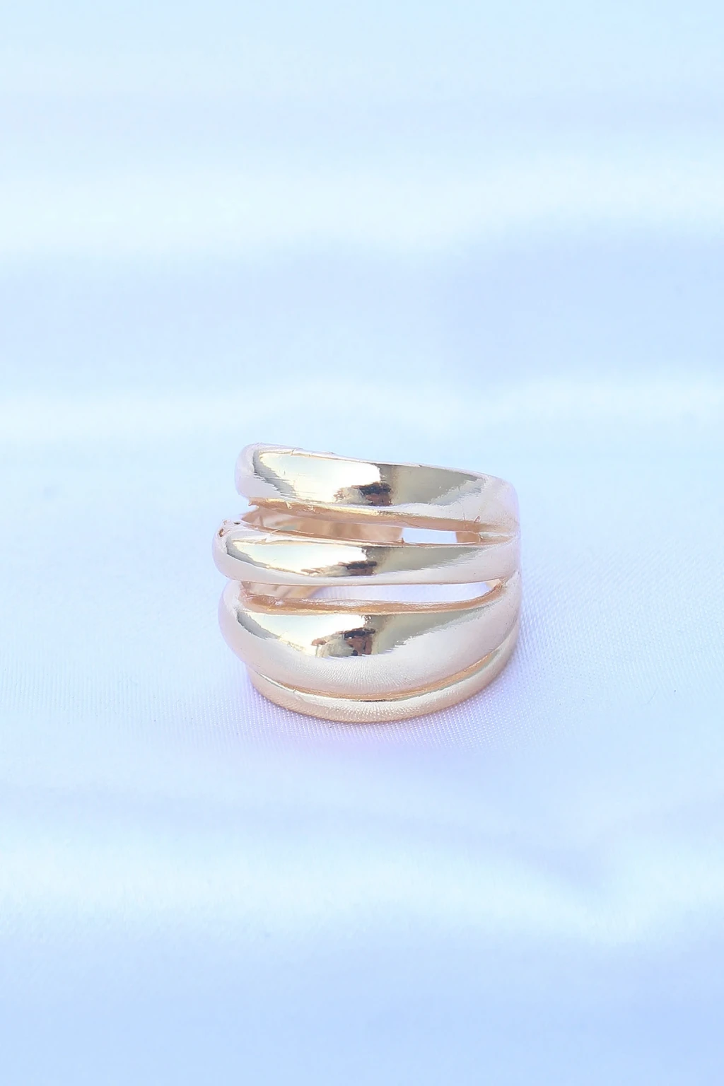 Pirinç Gold Renk Ayarlanabilir Tırtıklı Bombe Yüzük - TJ-BYK3170