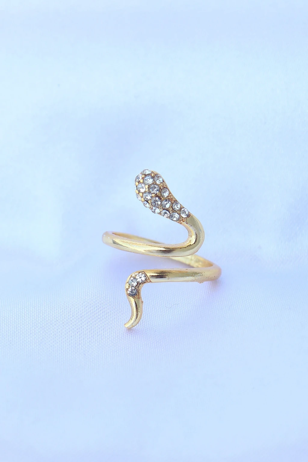 Pirinç Gold Renk Ayarlanabilir Zirkon Taşlı Yılan Yüzük - TJ-BYK3188