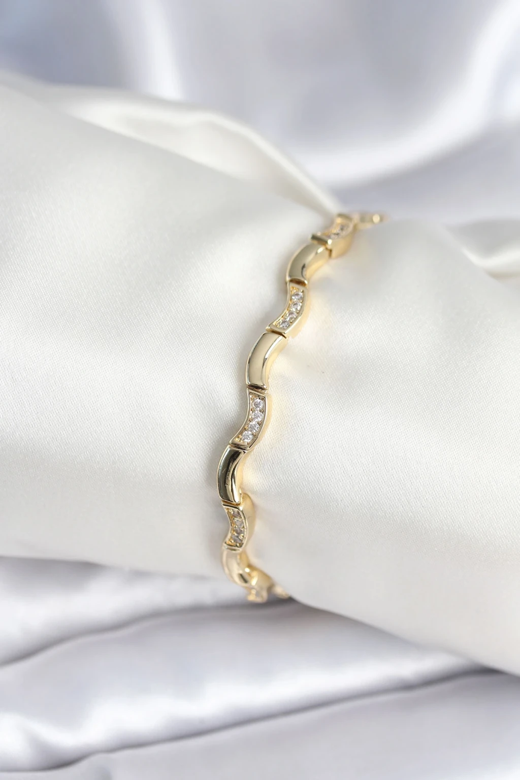 Pirinç Gold Renk Dalgalı Model Kadın Bileklik - TJ-BB7962