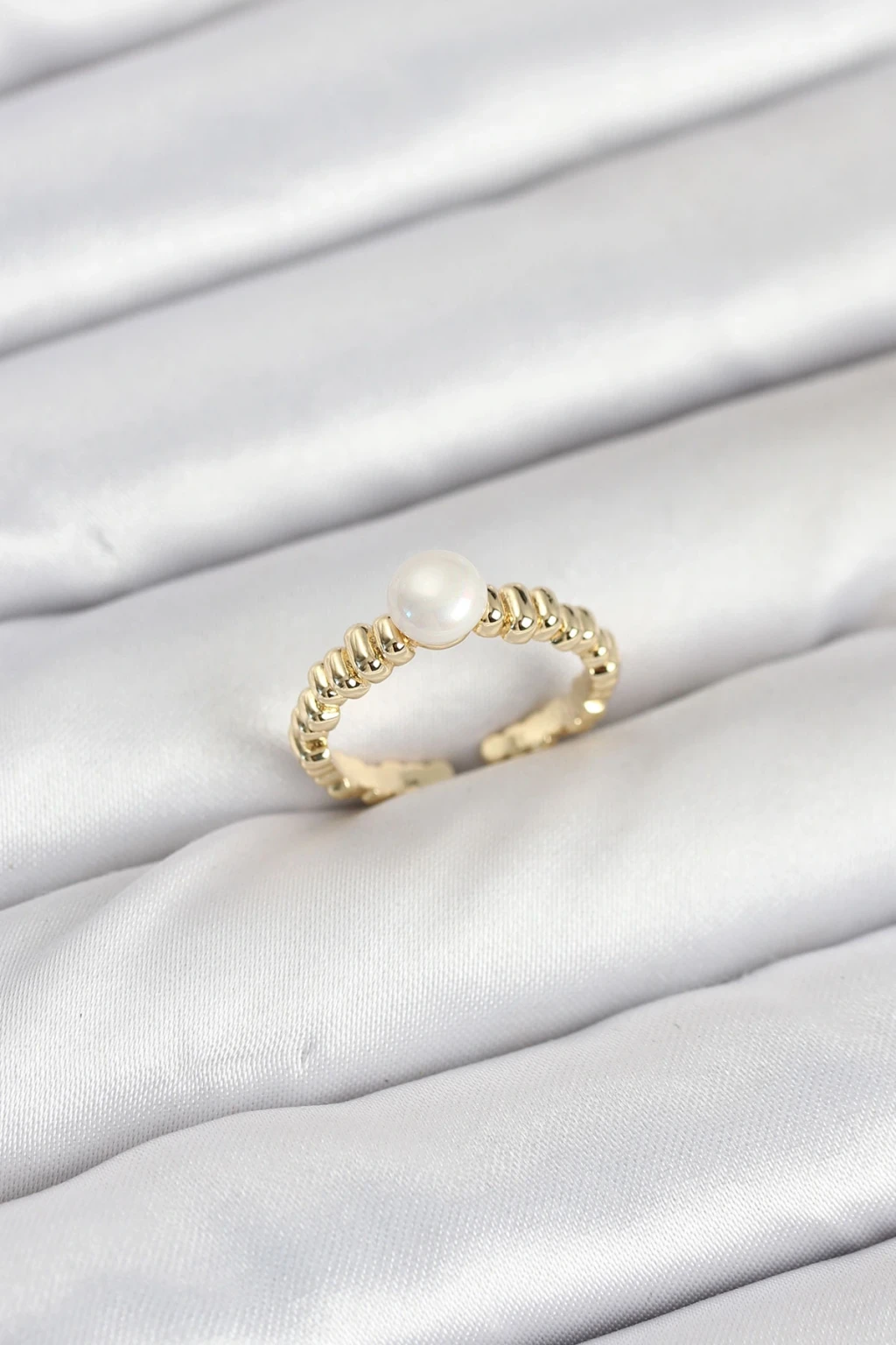 Pirinç Gold Renk Göbek İnci Model Kadın Yüzük - TJ-BYK3886