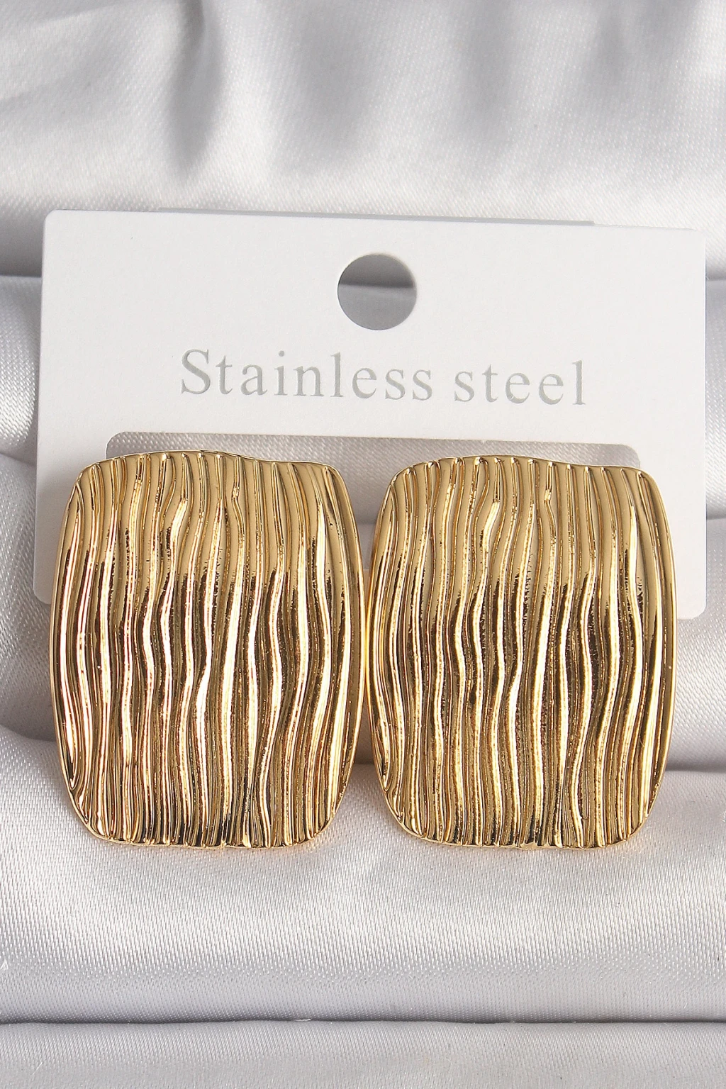 Pirinç Gold Renk İşlemeli Kare Plaka Model Kadın Küpe - TJ-BKP10145