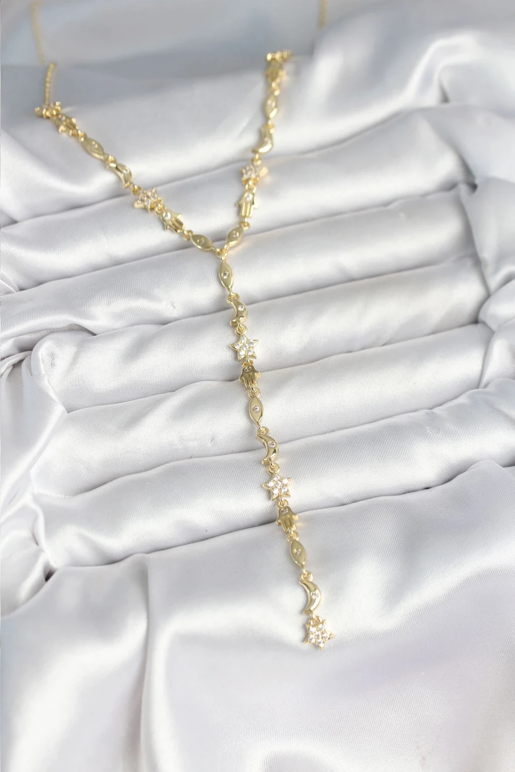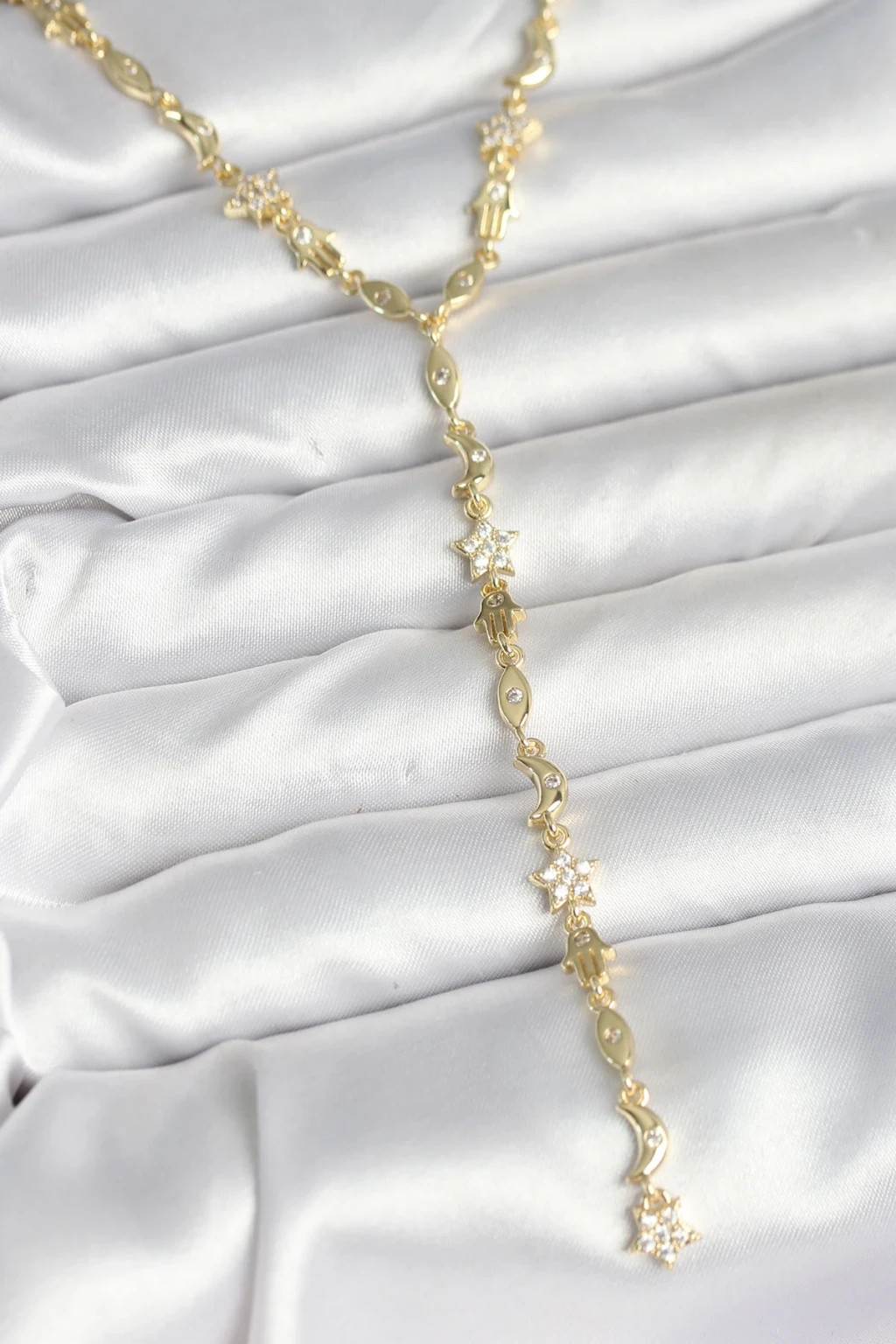 316L Çelik Gold Renk Mavi Mineli El Figür Tarot Kolye - TJ-BKO9040