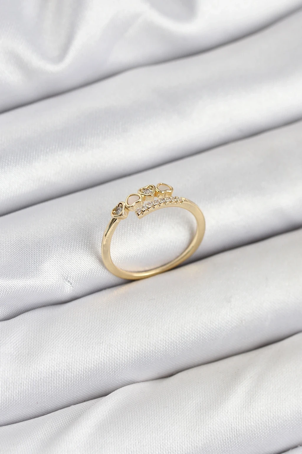 Pirinç Gold Renk Kalpli Detaylı Zirkon Taşlı Kadın Yüzük - TJ-BYK3840