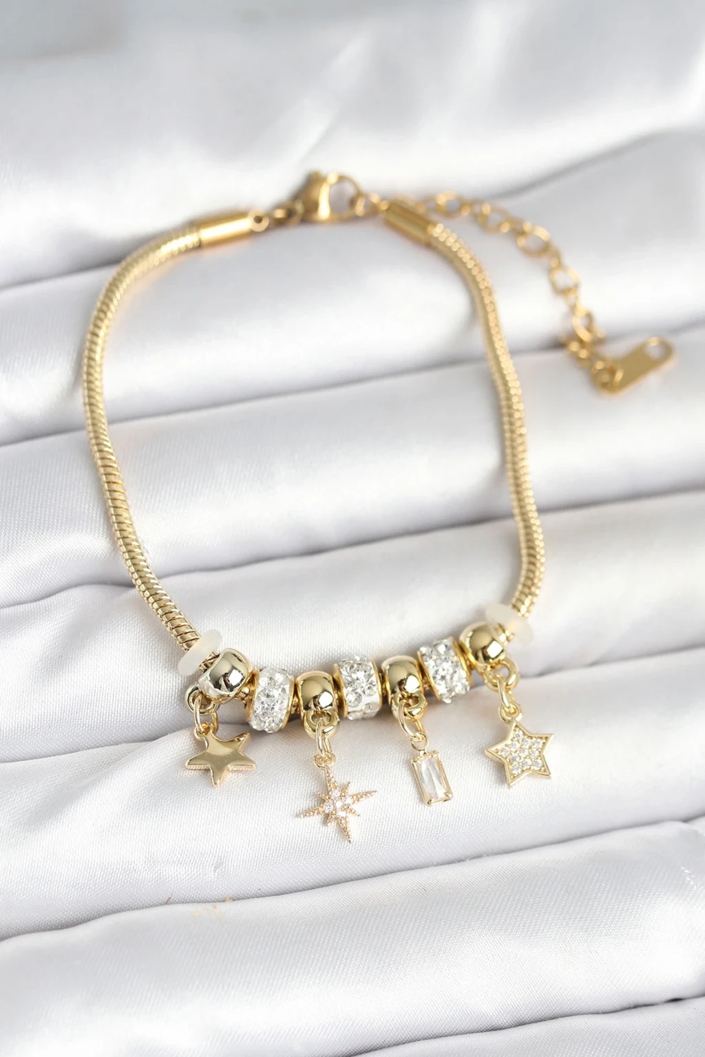 Pirinç Gold Renk Kutup Yıldızı Charmlı Kadın Bileklik - TJ-BB7991