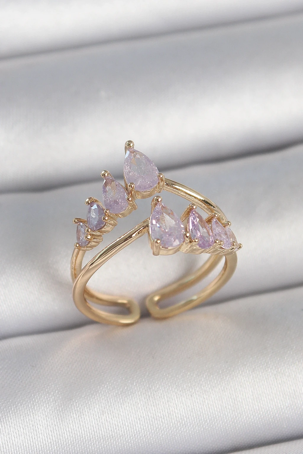 Pirinç Gold Renk Mor Damla Zirkon Taşlı Taç Model Kadın Yüzük - TJ-BYK3715