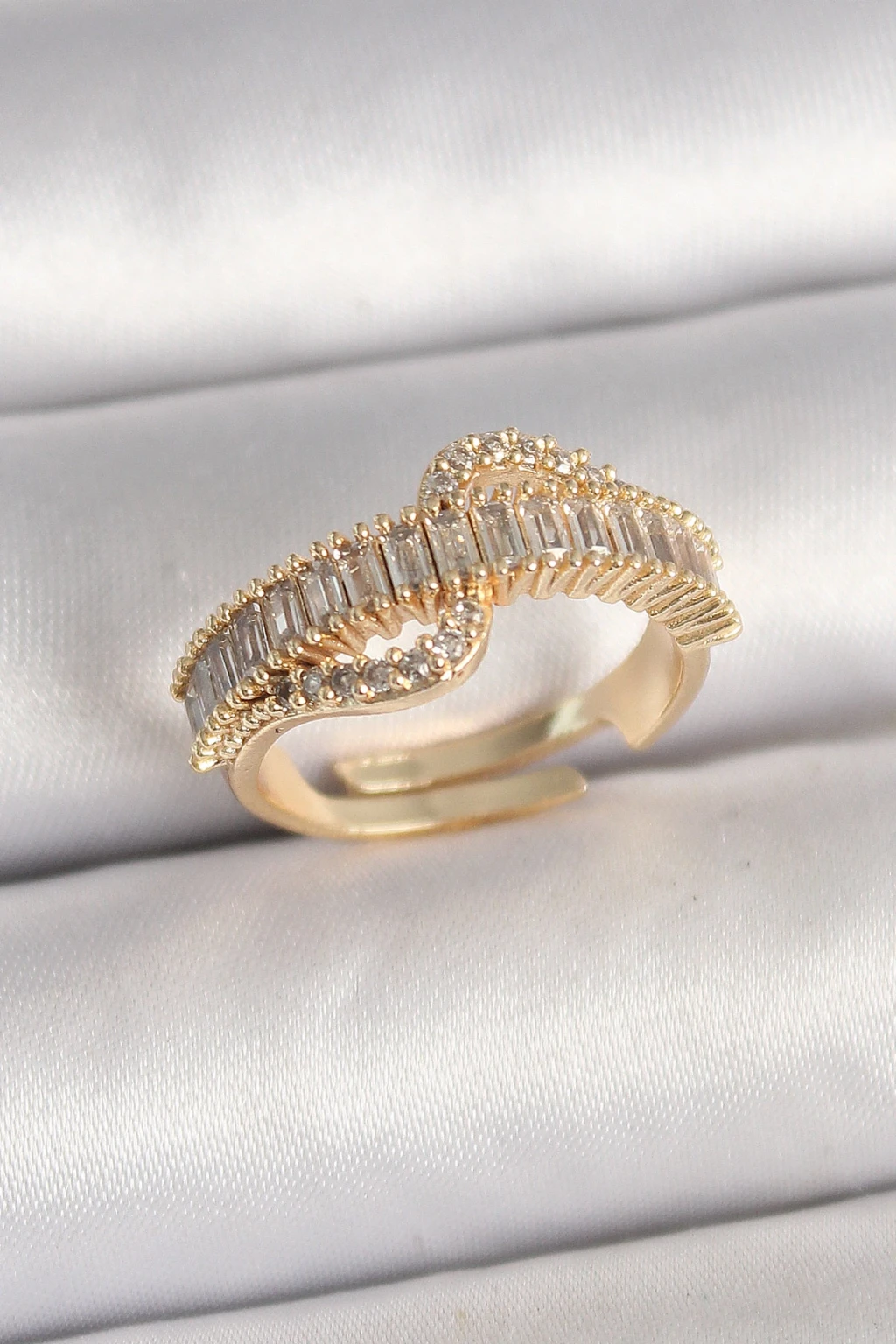 Pirinç Gold Renk Su Yolu Zirkon Taşlı Ayarlanabilir Model Kadın Yüzük - TJ-BYK3691