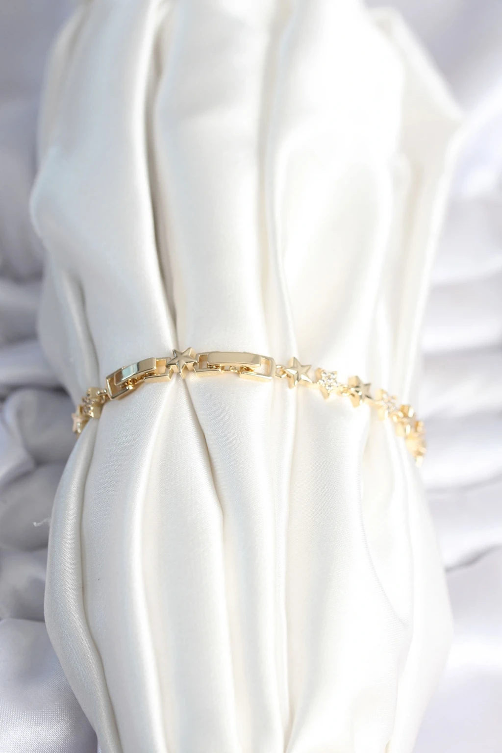 Yıldız Figürlü Gold Renk Pirinç Kadın Bileklik - TJ-BB8003