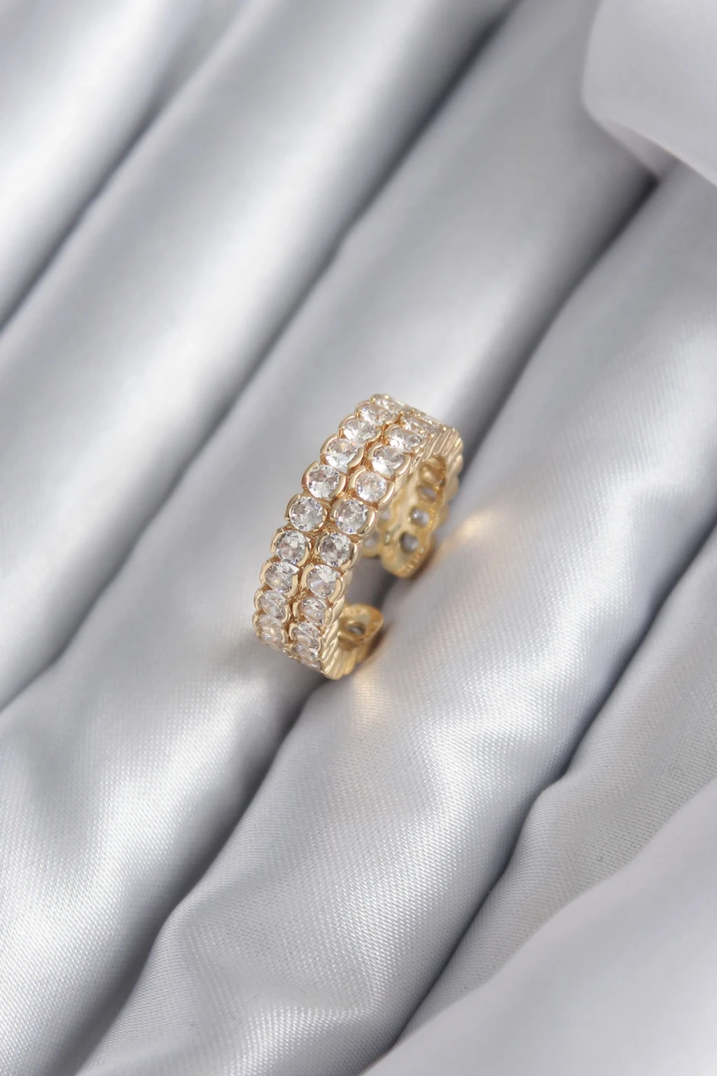 Pirinç Gold Renk Zirkon Taşlı Kadın Yüzük - TJ-BYK2939
