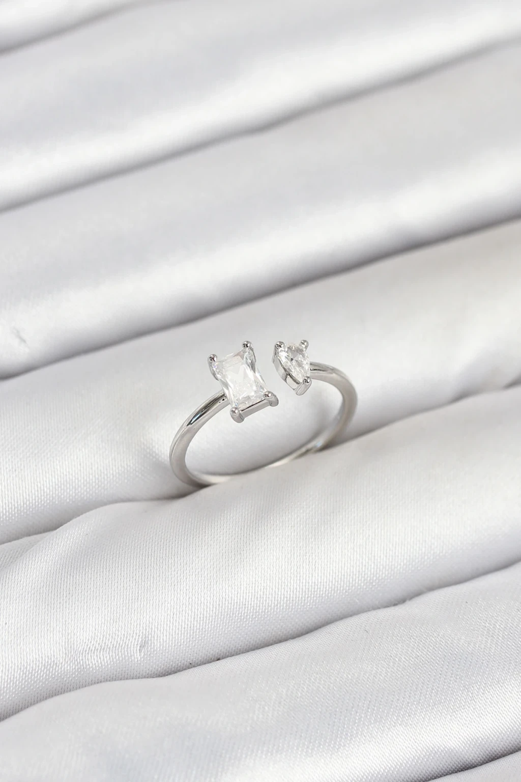 Pirinç Ayarlamalı Gümüş Renk Zirkon Taşlı 2li Görünüm Fiyonk Yüzük - TJ-BYK3288