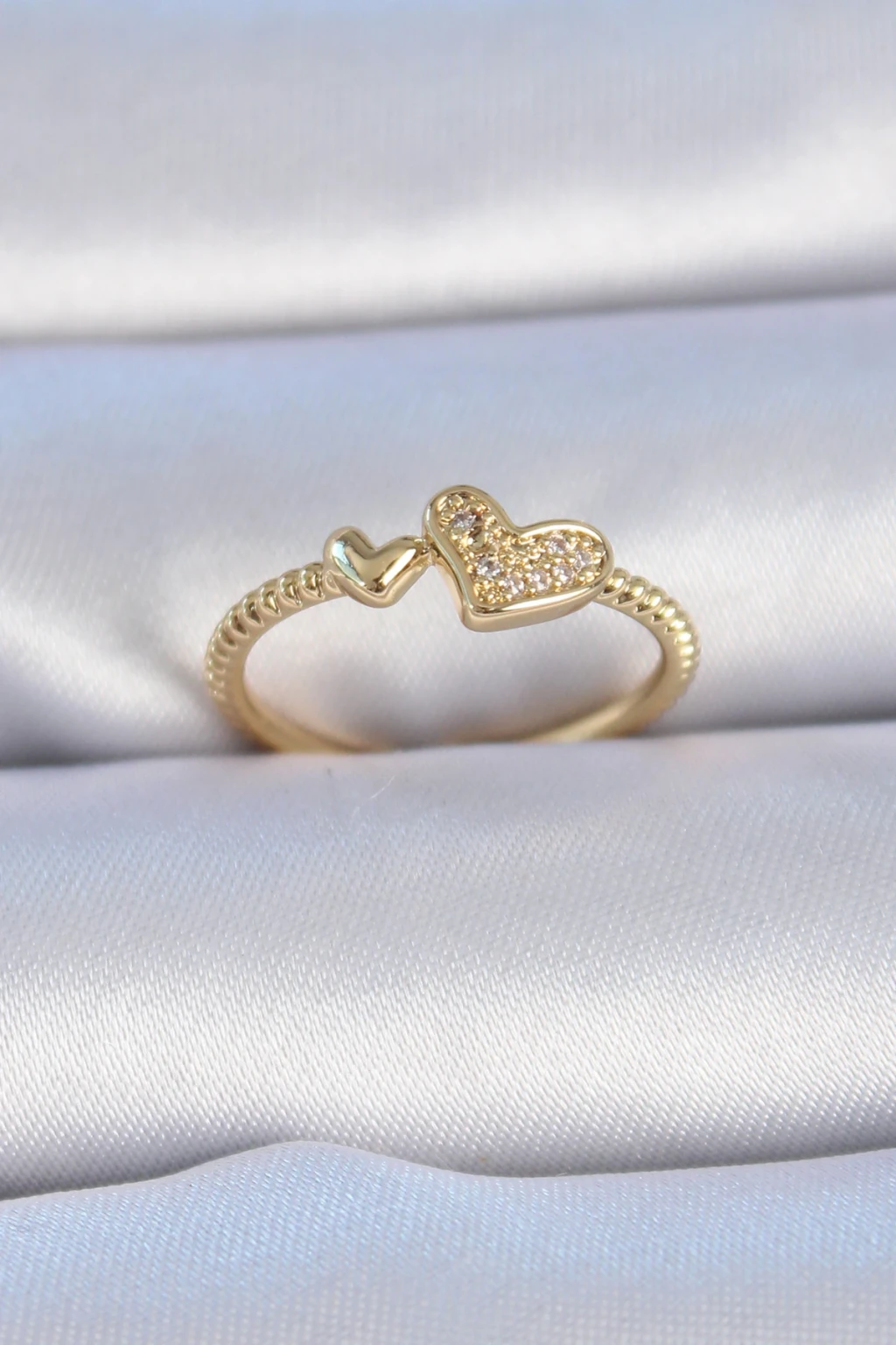 Pirinç Gold Renk Zirkon Taşlı Kalp Model Kadın Yüzük - TJ-BYK3306