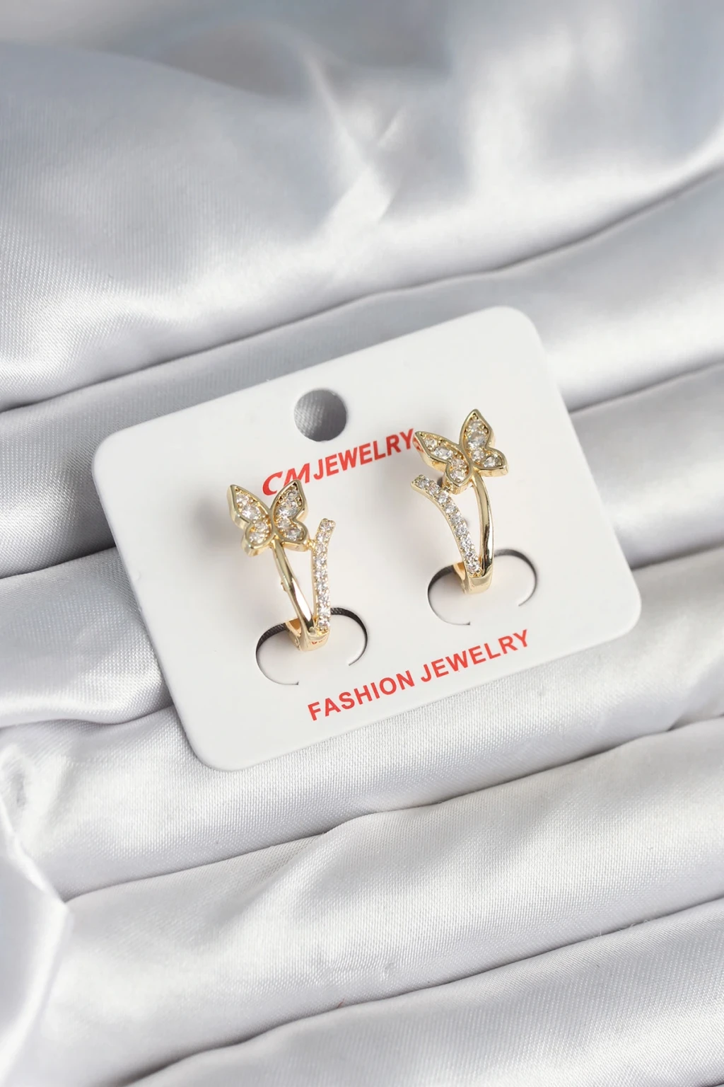 Kutup Yıldızı Pirinç Gold Renk Zirkon Taşlı Kadın Küpe - TJ-BKP11303