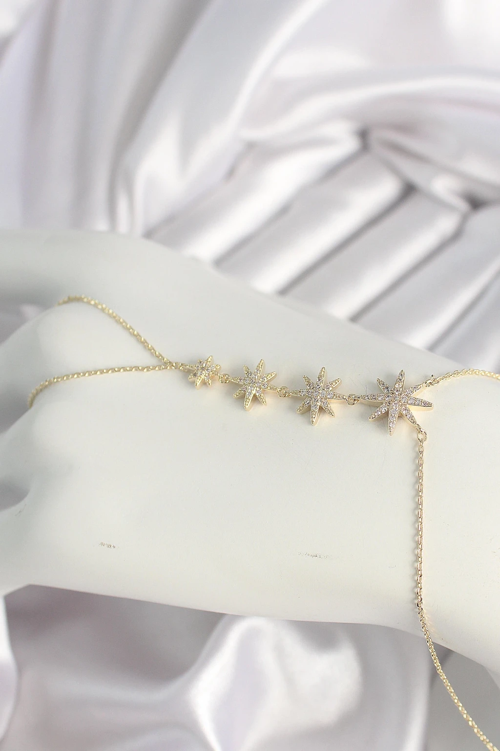 Pirinç Gold Renk Zirkon Taşlı Kutup Yıldız Model Kadın Şahmeran - TJ-SN613