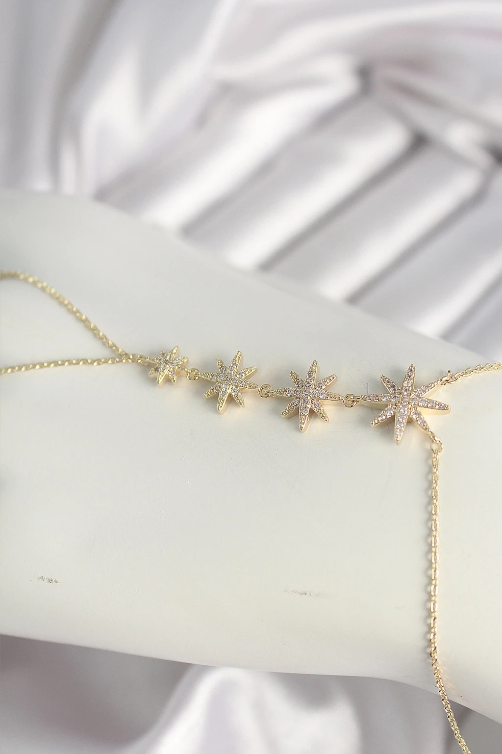 316L Çelik Gold Renk Zirkon Taşlı Yıldızlı Halhal - TJ-HH1620