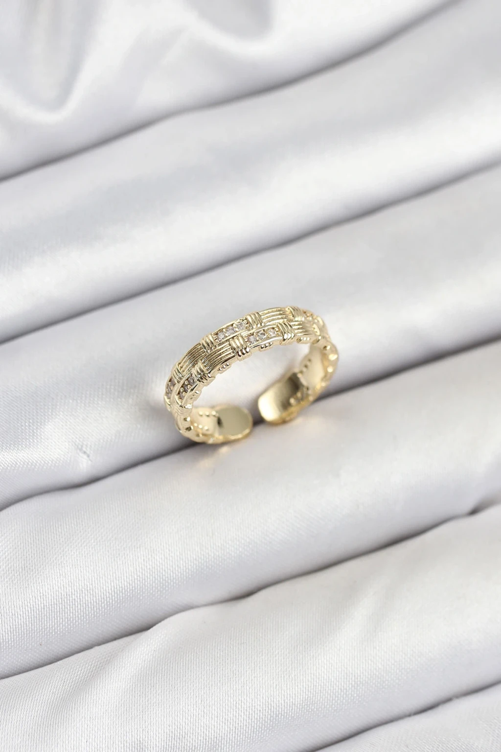 Gold Renk Şerit Zirkon Taşlı Kadın Yüzük - TJ-BYK3905