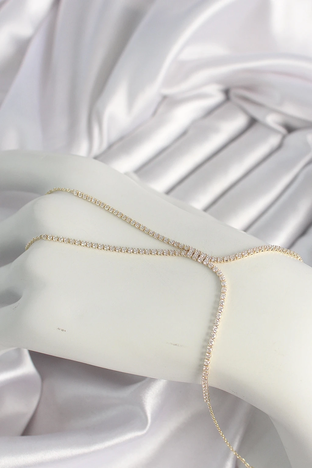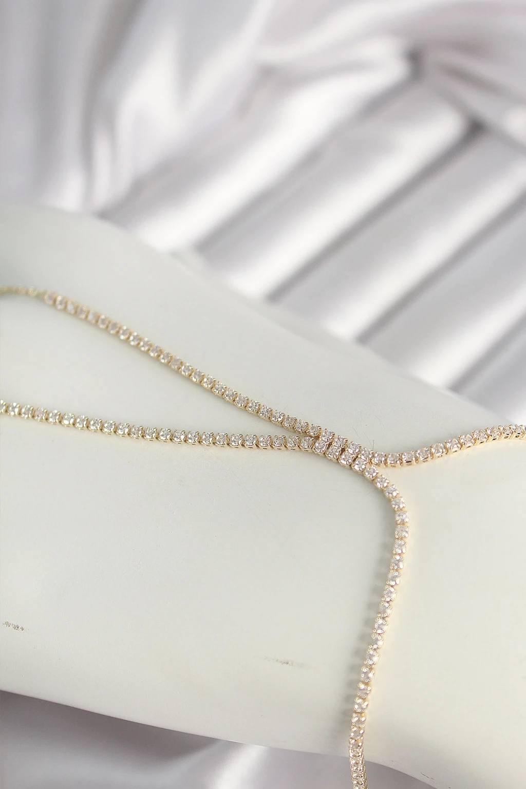 Pirinç Gold Renk Zirkon Taşlı Su Yolu Zirkon Taşlı Kadın Şahmeran - TJ-SN615
