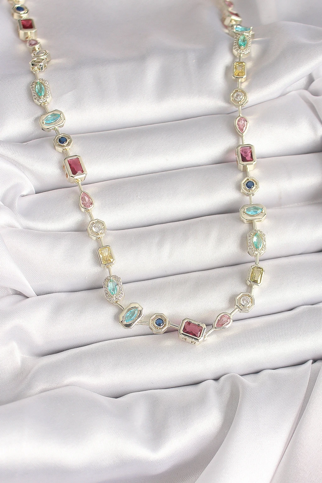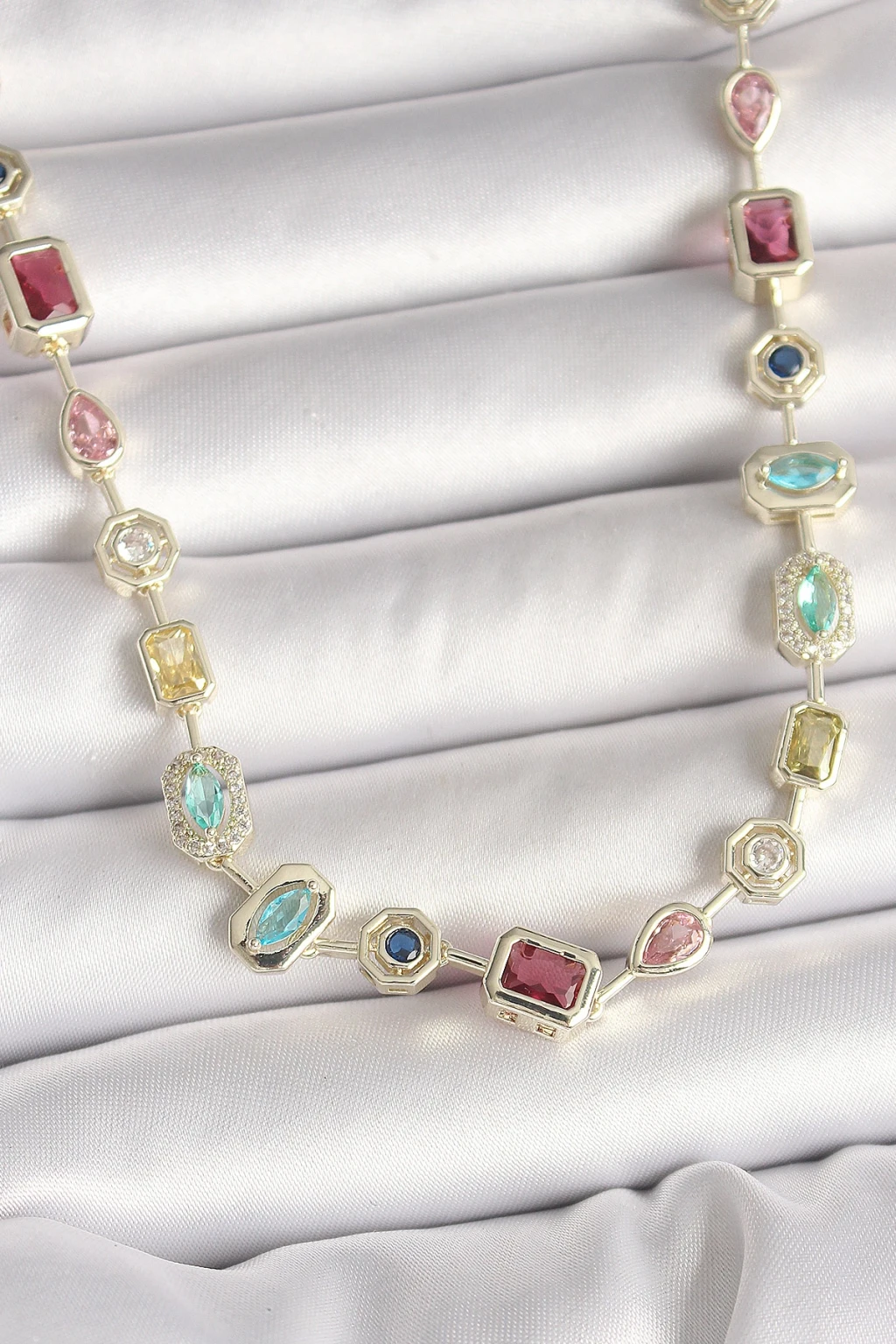 Pirinç Gold Renk Zirkon Taşlı Kadın Kolye - TJ-BKO10601
