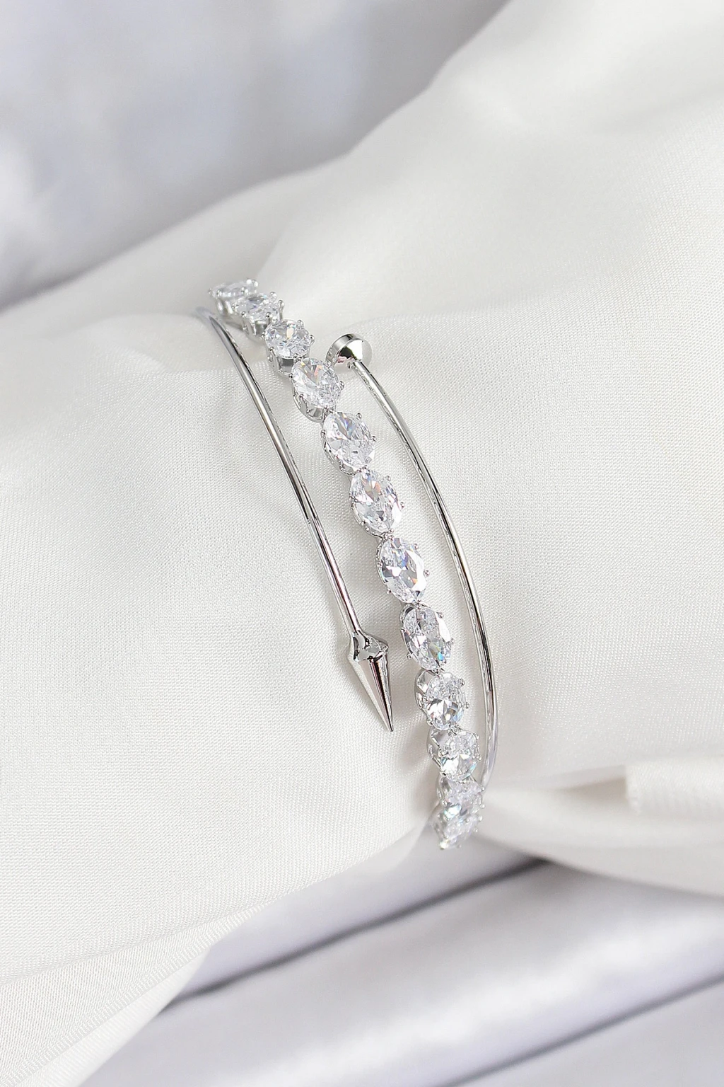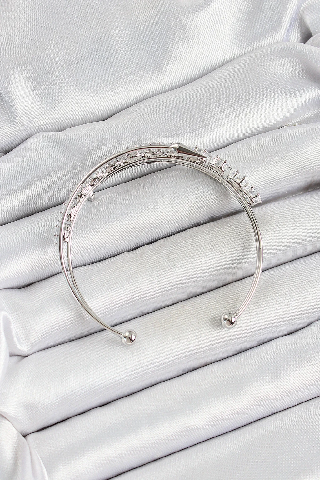 Pirinç Gümüş Renk Arpa Zirkon Taşlı Kadın Bileklik - TJ-BB7064