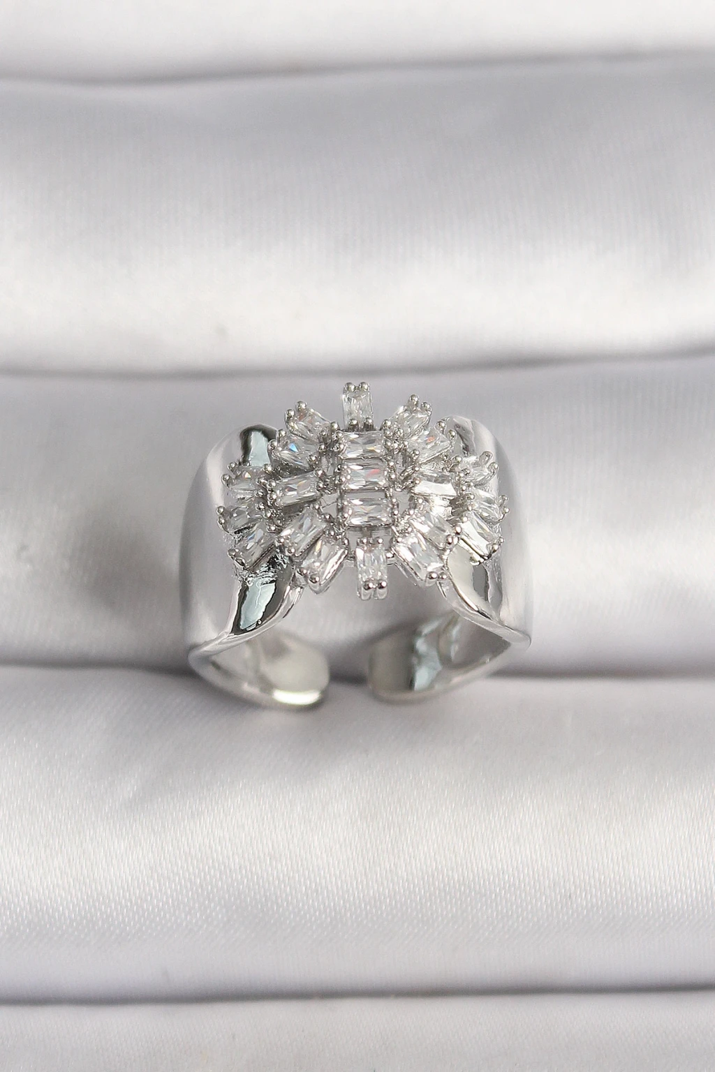 Gümüş Renk Şerit Zirkon Taşlı Kadın Yüzük - TJ-BYK3904