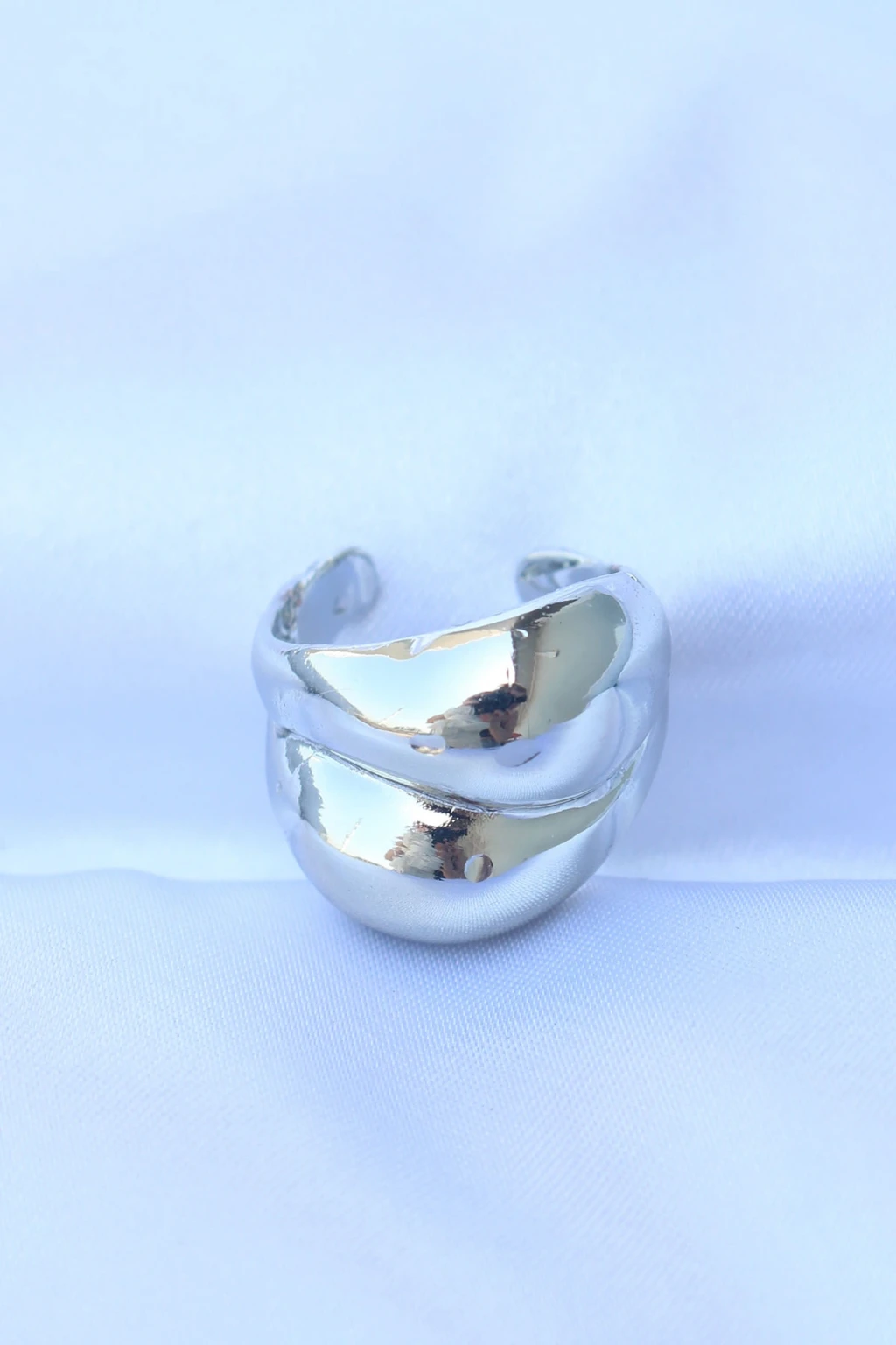 Pirinç Gümüş Renk Ayarlanabilir Damla Yüzük - TJ-BYK3173