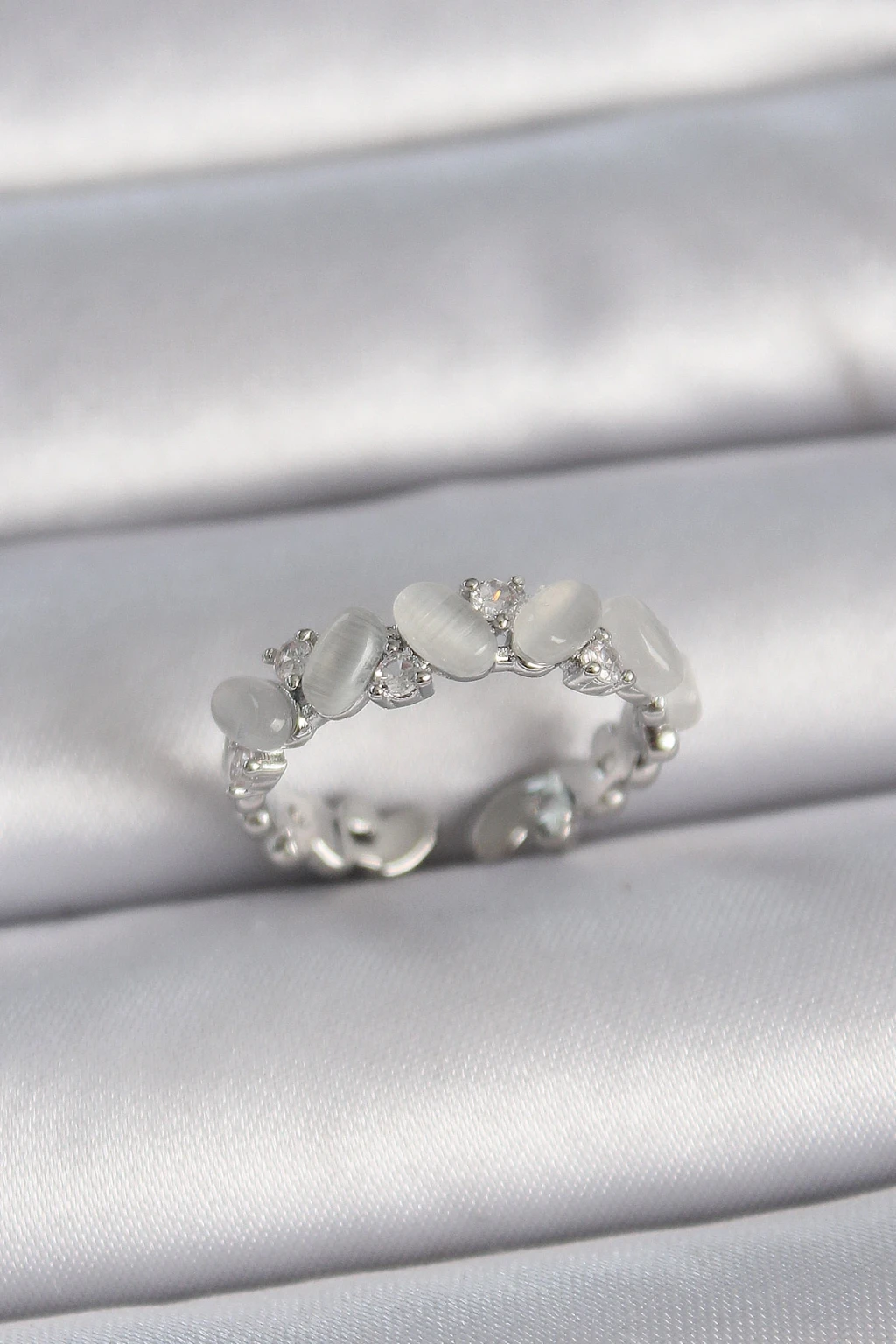 Pirinç Gümüş Renk Ayarlanabilir Zirkon Taşlı Beyaz Mineli Model Kadın Yüzük - TJ-BYK3383