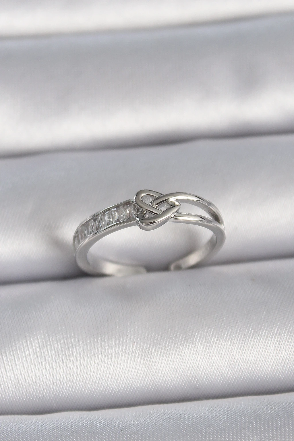 Pirinç Gümüş Renk Ayarlanabilir Zirkon Taşlı Düğüm Kalp Model Kadın Yüzük - TJ-BYK3405