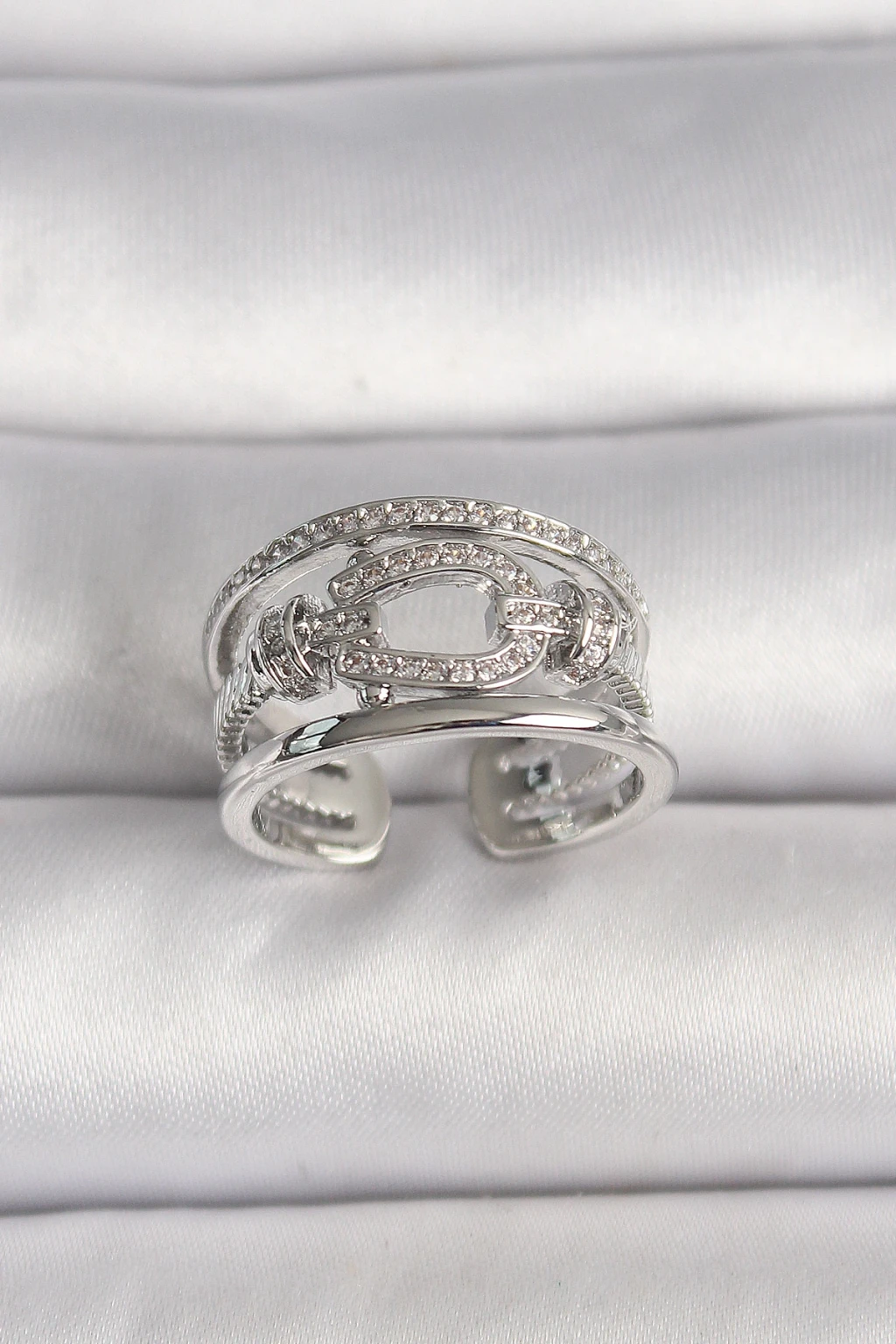 Gümüş Renk Şerit Zirkon Taşlı Kadın Yüzük - TJ-BYK3904