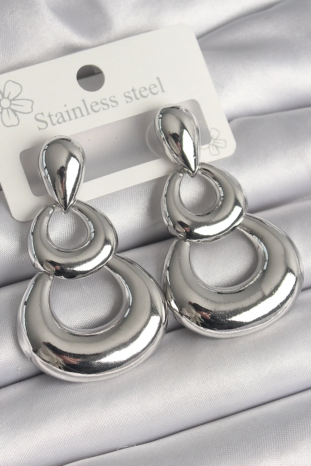 Pirinç Gümüş Renk Damla Detay Sallantı Halka Model Kadın Küpe - TJ-BKP10228