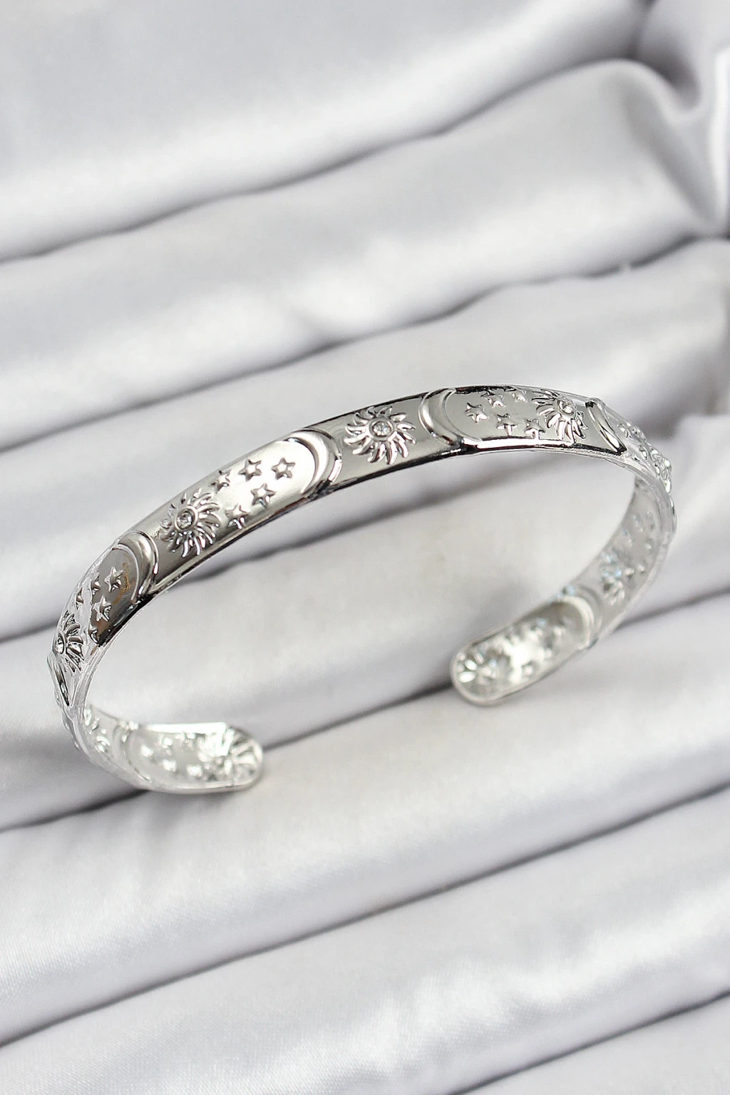 Pirinç Gümüş Renk İşlemeli Altı Açık Bileklik - TJ-BB7186