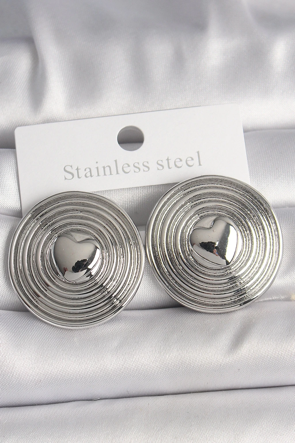 Pirinç Gümüş Renk Kalp İşlemeli Daire Plaka Model Kadın Küpe - TJ-BKP10154