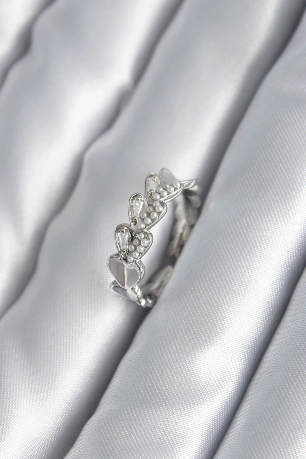 Pirinç Gümüş Renk Kalp Model İnci Detay Kadın Yüzük - TJ-BYK2982