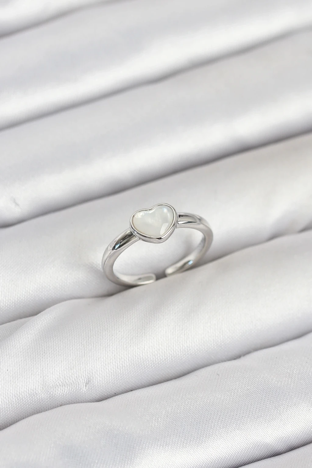 Pirinç Gümüş Renk Kalpli Kadın Yüzük - TJ-BYK3881
