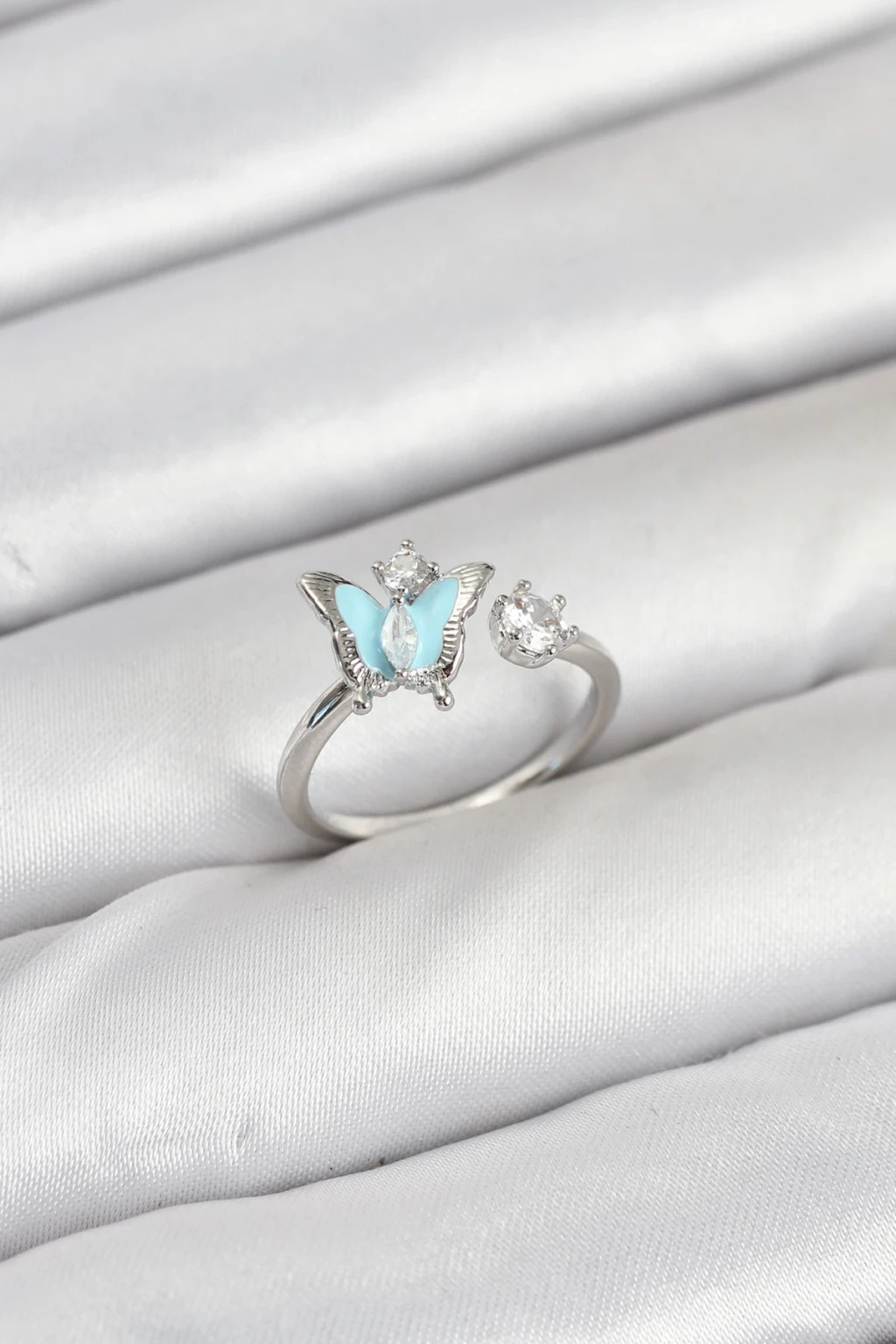 Pirinç Gümüş Renk Kelebek Model Kadın Yüzük - TJ-BYK3865
