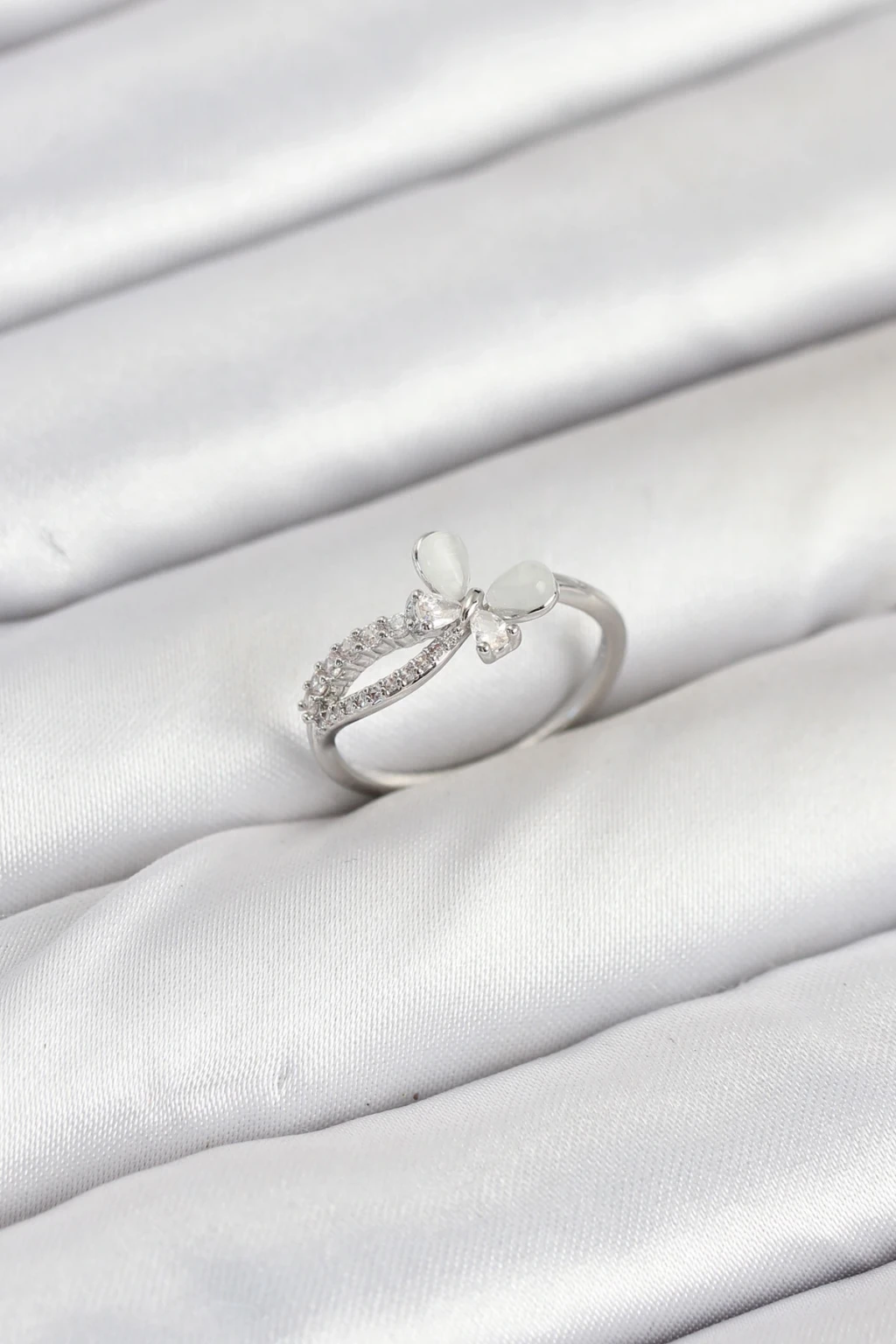 Pirinç Gümüş Renk Kelebek Zirkon Taşlı Kadın Yüzük - TJ-BYK3855