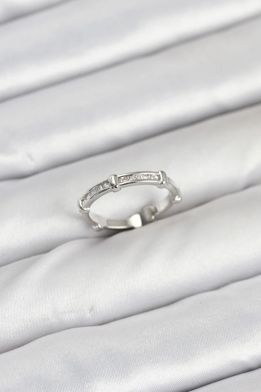 Gümüş Renk Şerit Zirkon Taşlı Kadın Yüzük - TJ-BYK3904