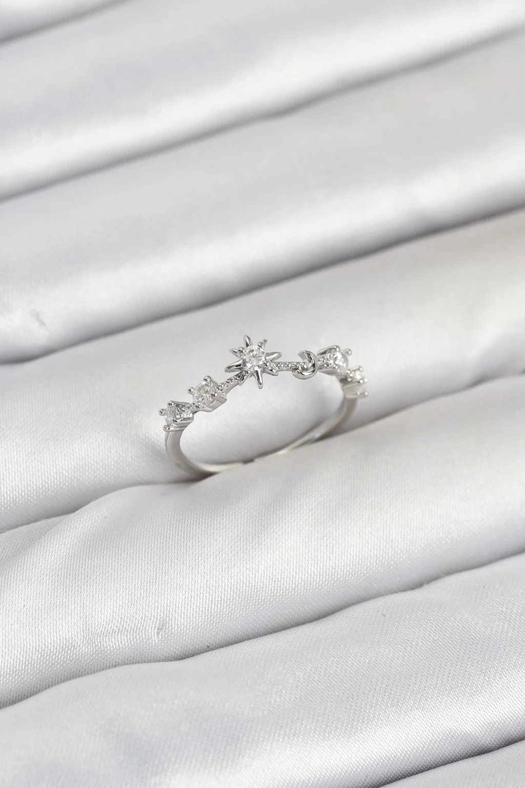 Pirinç Gümüş Renk Zirkon Taşlı Kadın Yüzük - TJ-BYK3902