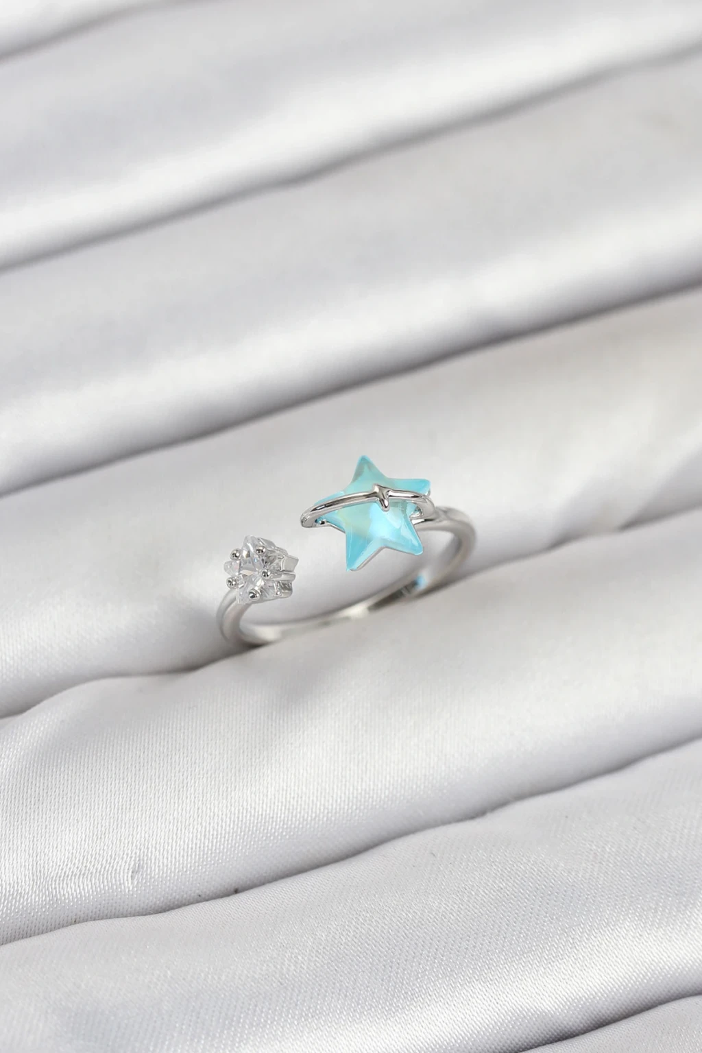 Pirinç Gümüş Renk Mavi Yıldızlı Model Kadın Yüzük - TJ-BYK3869