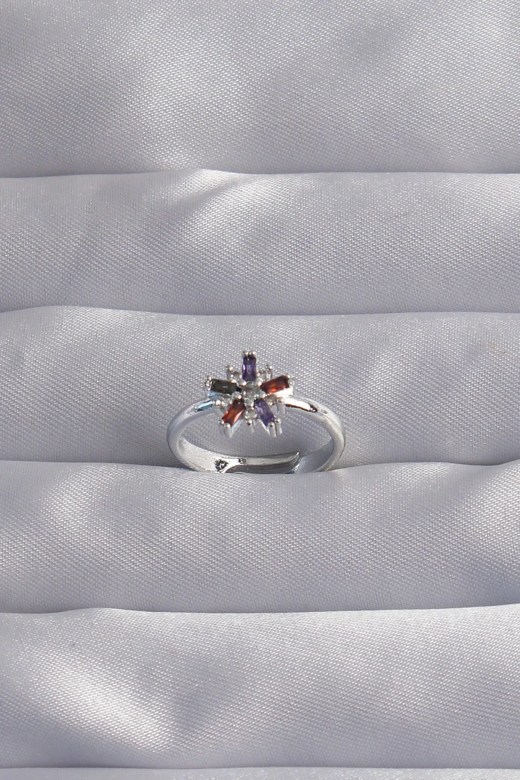 Pirinç Gümüş Renk Renkli Zirkon Taşlı Ayarlamalı Yüzük - TJ-BYK3256