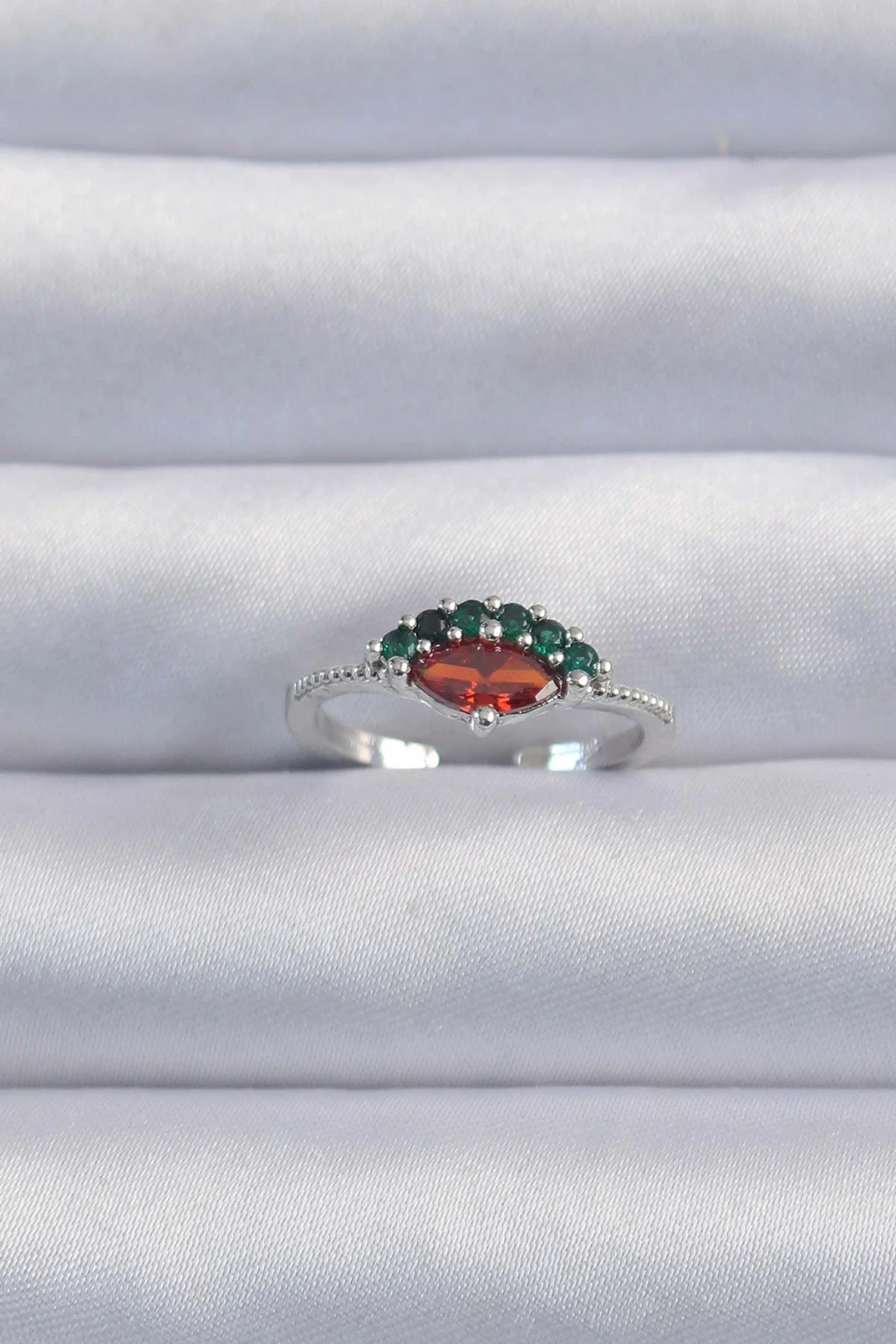 Pirinç Gümüş Renk Renkli Zirkon Taşlı Ayarlamalı Yüzük - TJ-BYK3256
