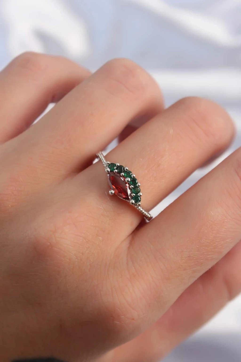 Gümüş Renk Renkli Zirkon Taşlı Kadın Yüzük - TJ-BYK2843