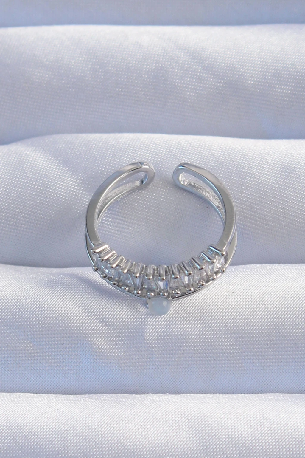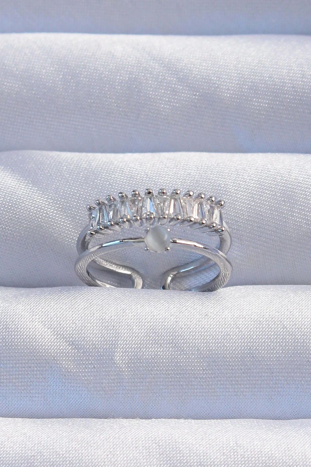 Pirinç Gümüş Renk Sedefli Zirkon Taşlı Su Yolu Model 2li Görünüm Ayarlanabilir Yüzük - TJ-BYK3254