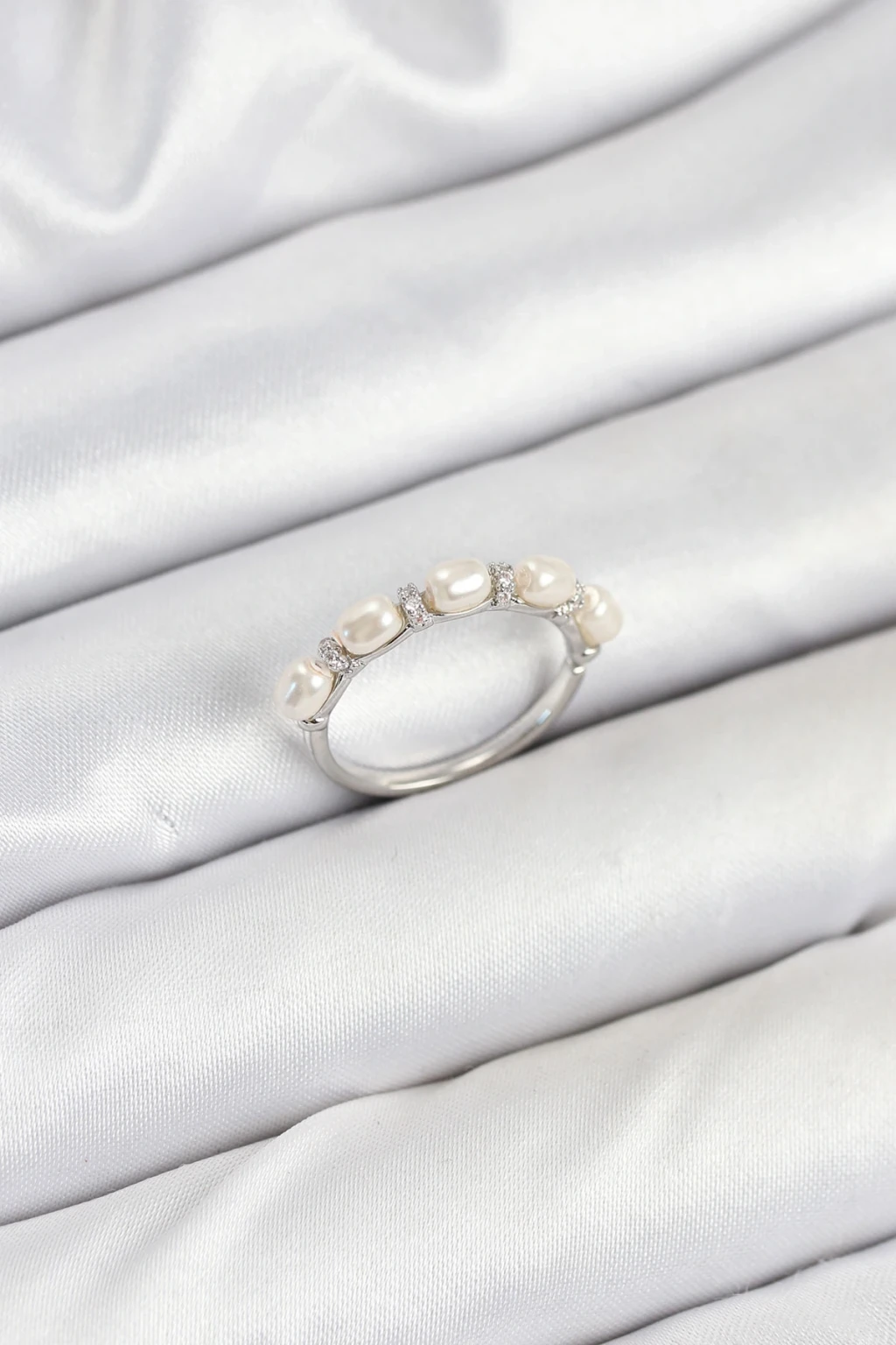 Pirinç Gümüş Renk Sıralı İncili Kadın Yüzük - TJ-BYK3845