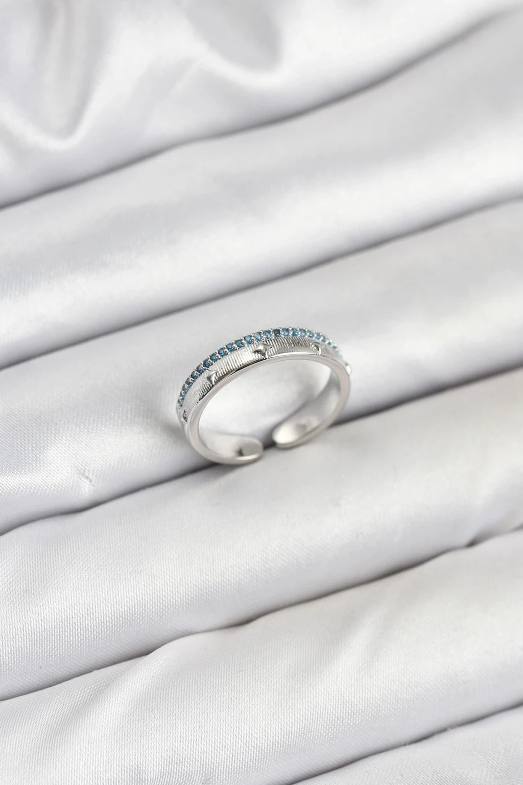 Gümüş Renk Şerit Zirkon Taşlı Kadın Yüzük - TJ-BYK3904