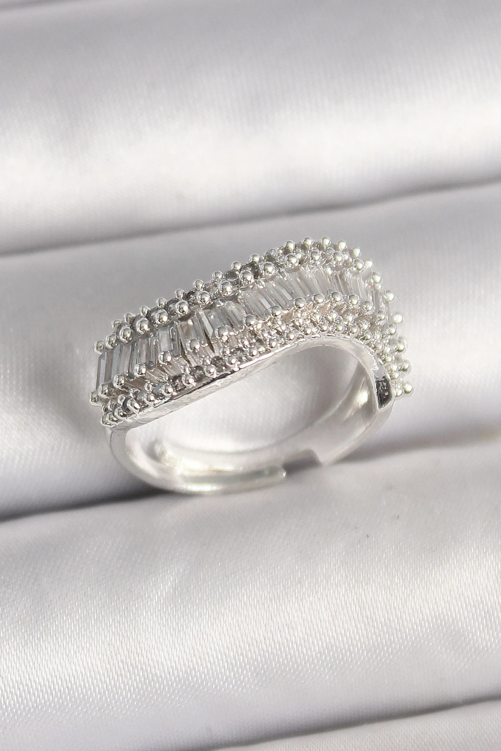 Pirinç Gümüş Renk Su Yolu Zirkon Dalga Model Ayarlanabilir Kadın Yüzük - TJ-BYK3692
